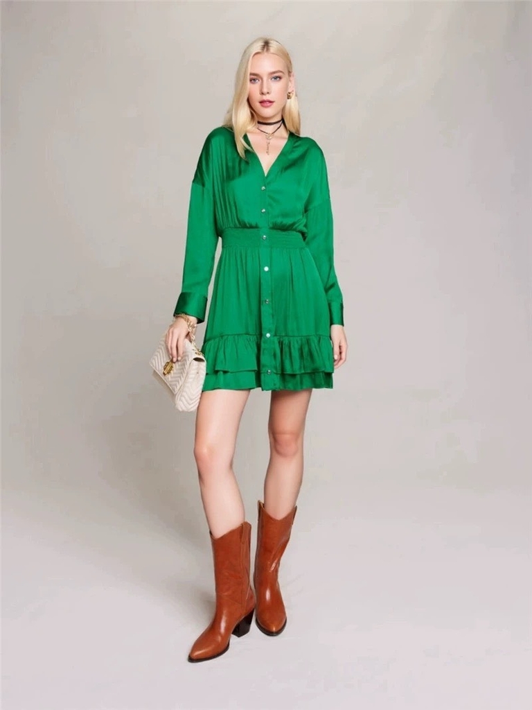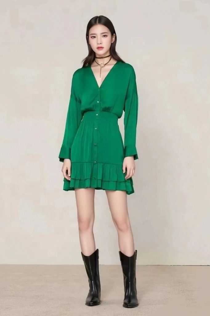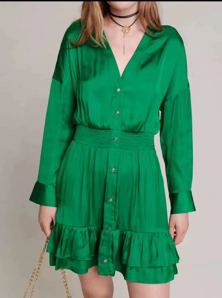 Váy MAJE lụa xanh lá
