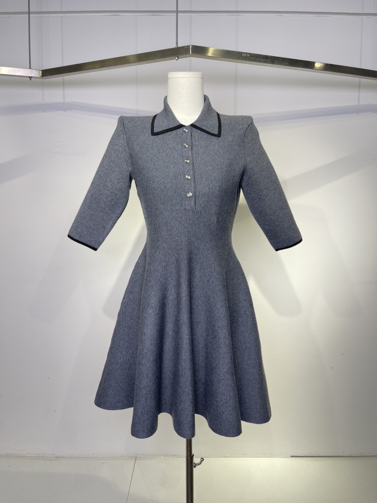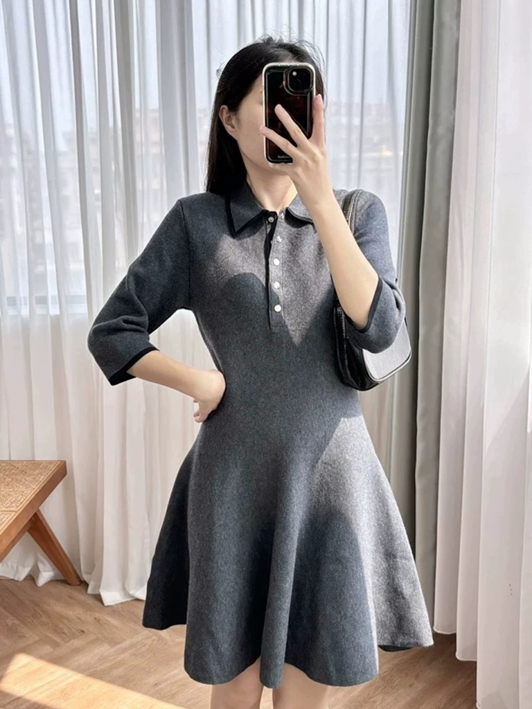 Váy len REFORMATION navy cổ bẻ