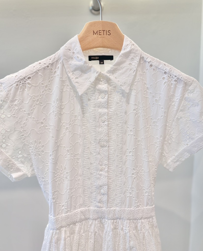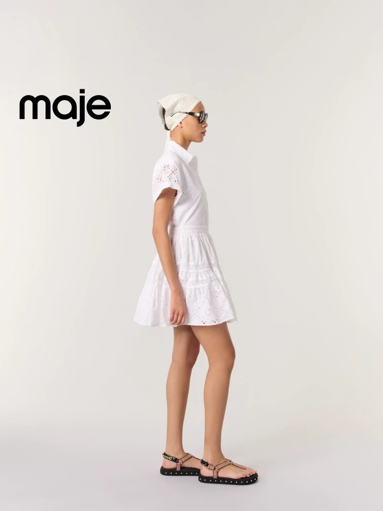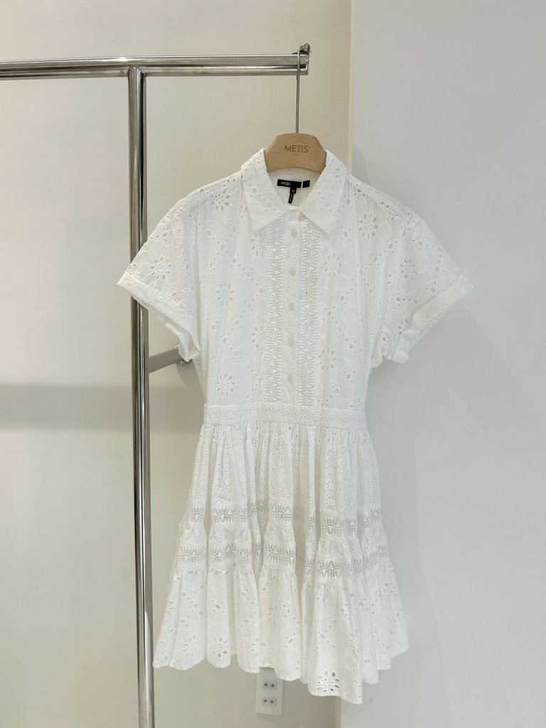Váy MAJE trắng cải ren cộc tay