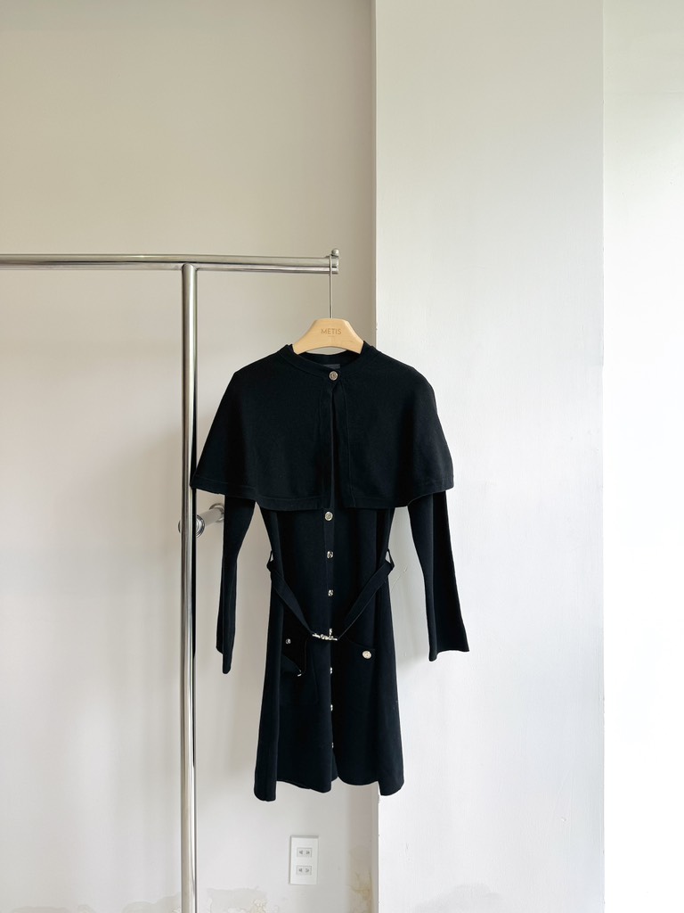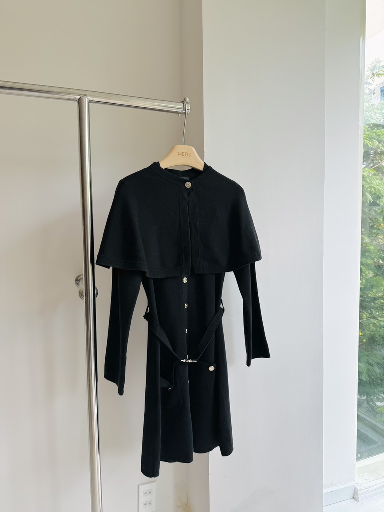 Váy 2 dây SANDRO đen chân xòe cổ đá