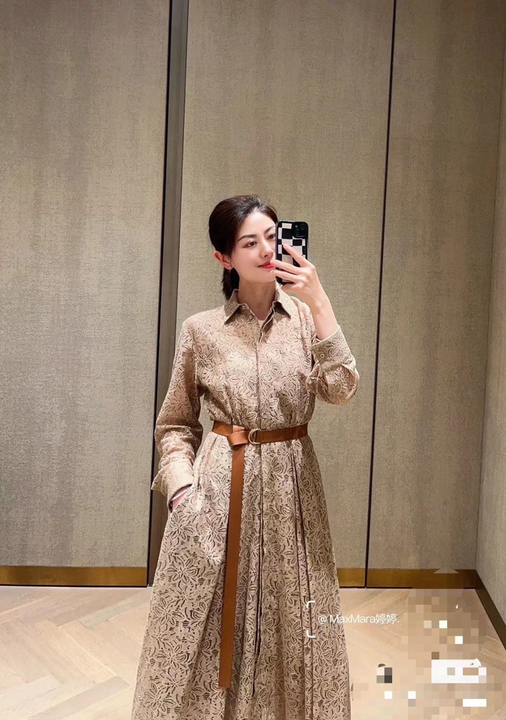 Váy MAX MARA nâu họa tiết kèm belt