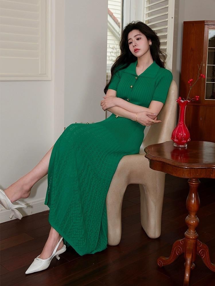 Váy SELF PORTRAIT cộc tay ren xanh hoa nổi