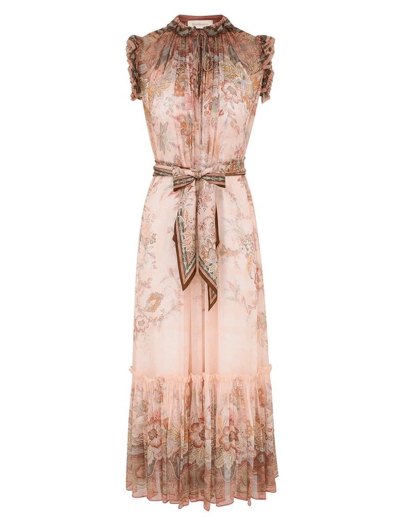 Váy sát nách ZIMMERMANN nâu kèm belt lụa