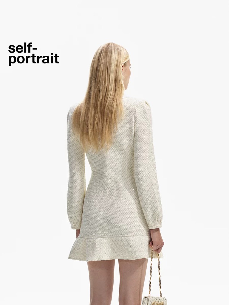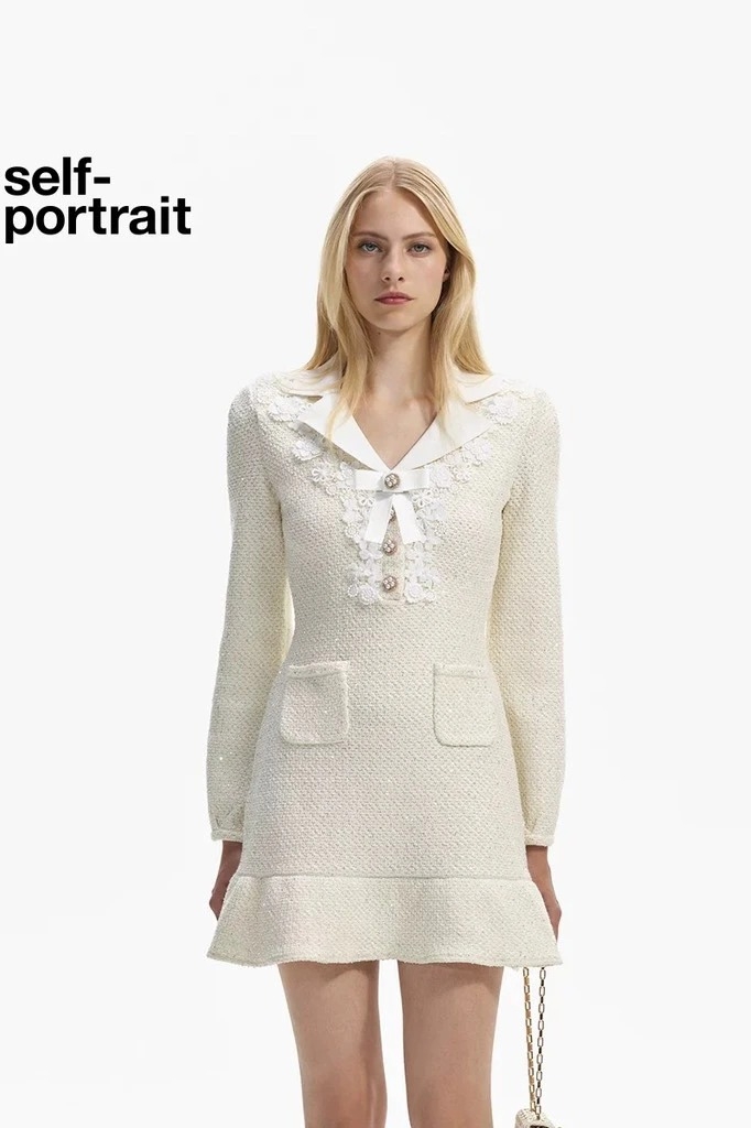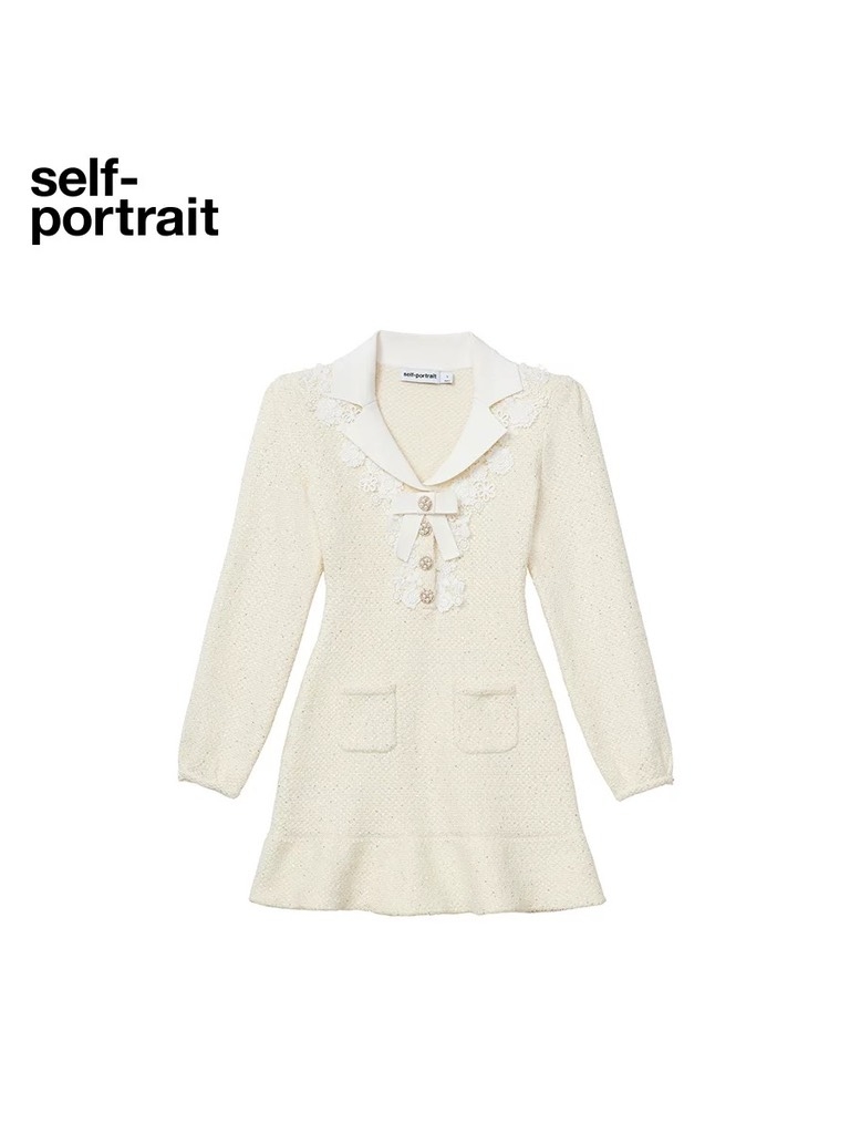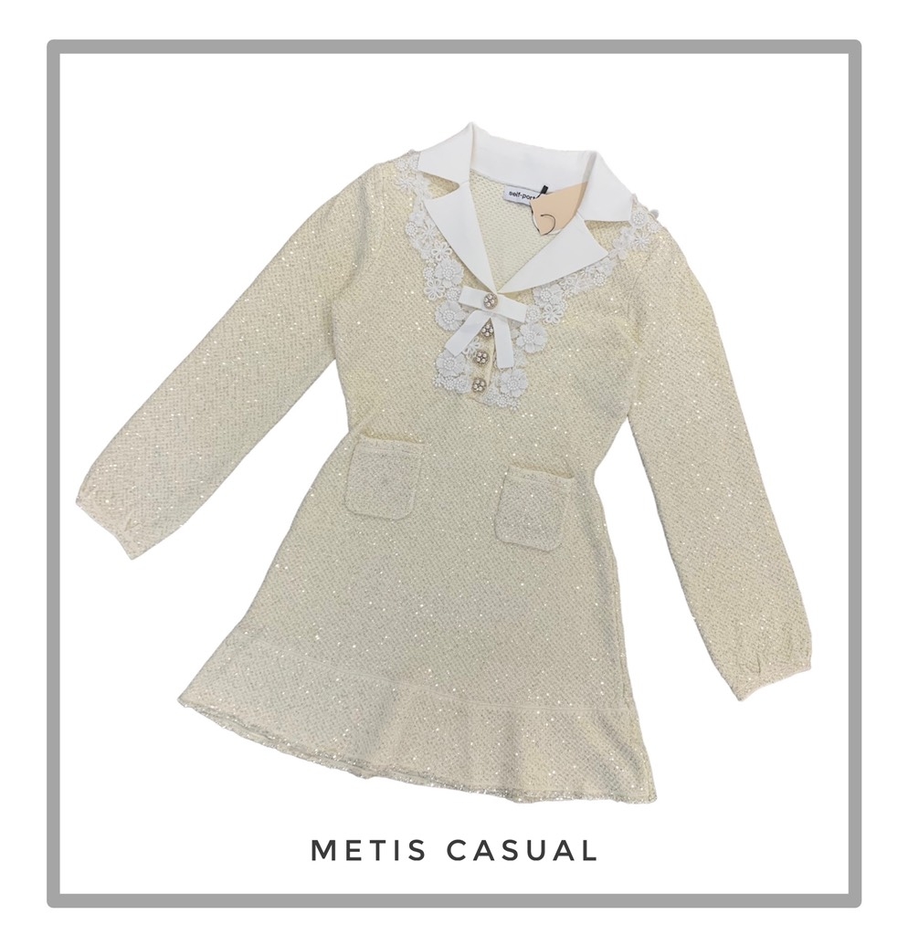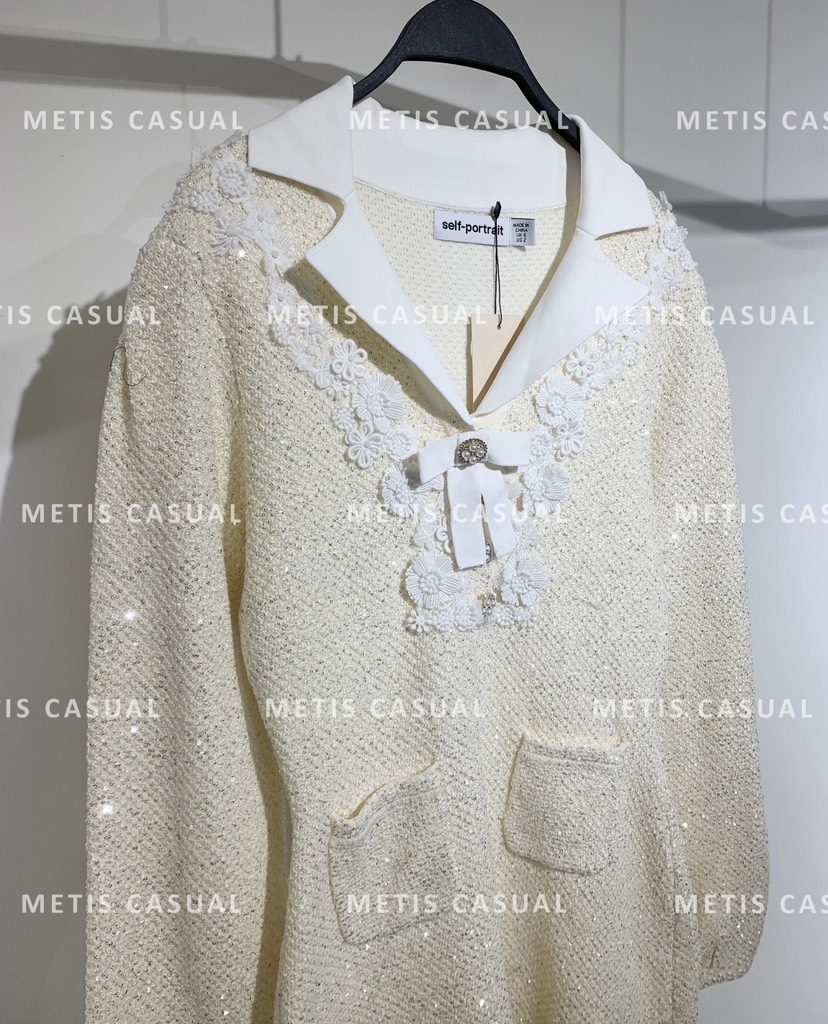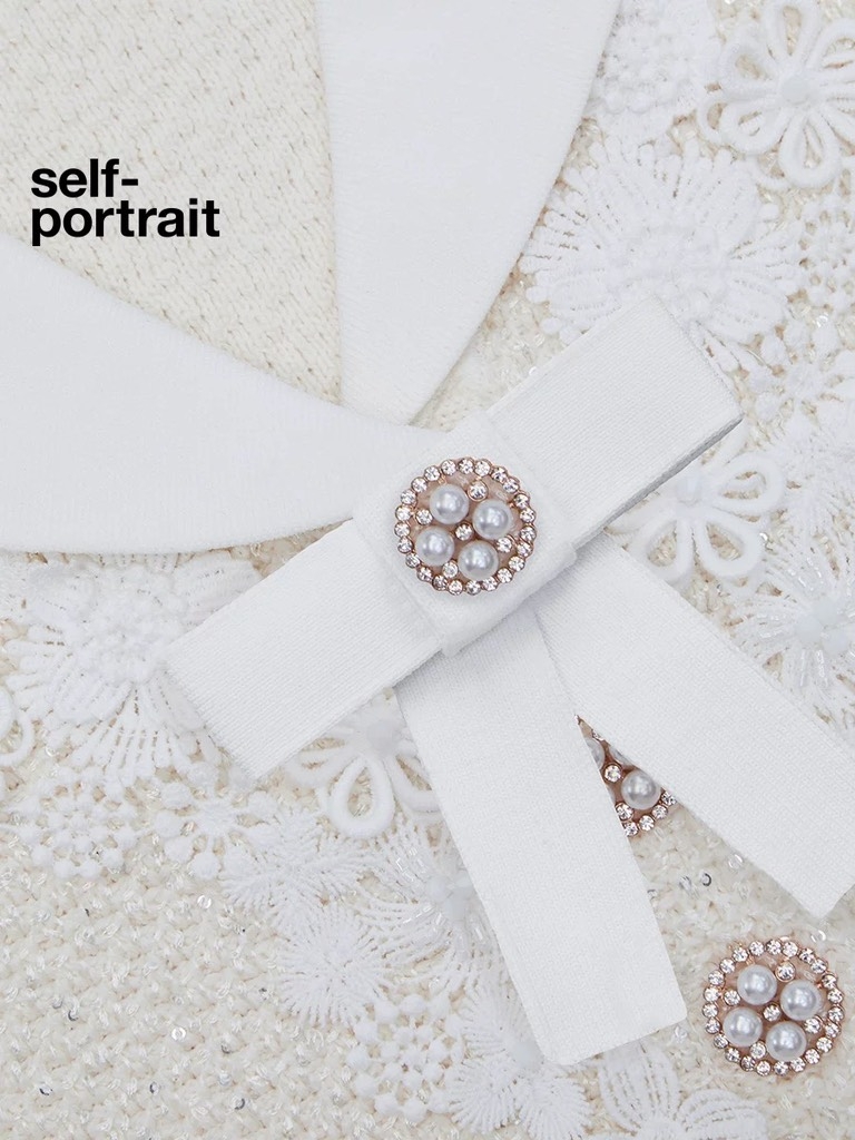 Váy SELF PORTRAIT bling cổ nơ trắng
