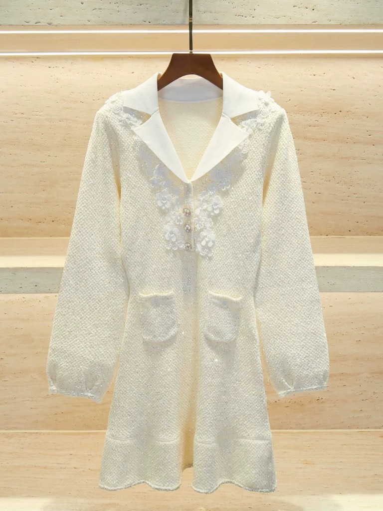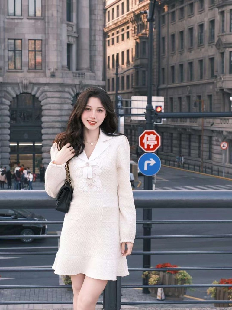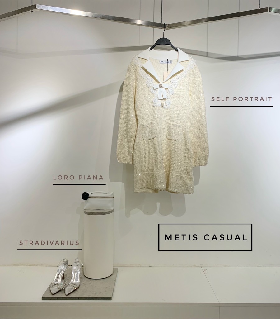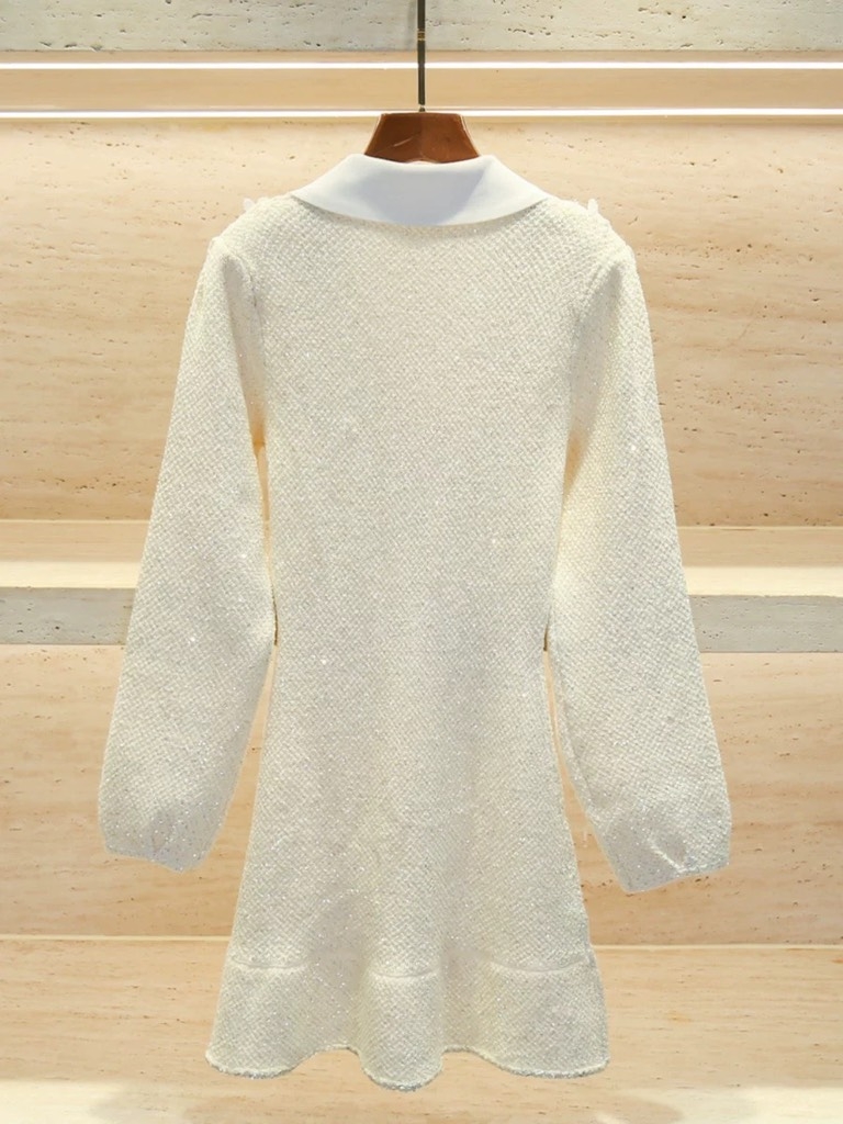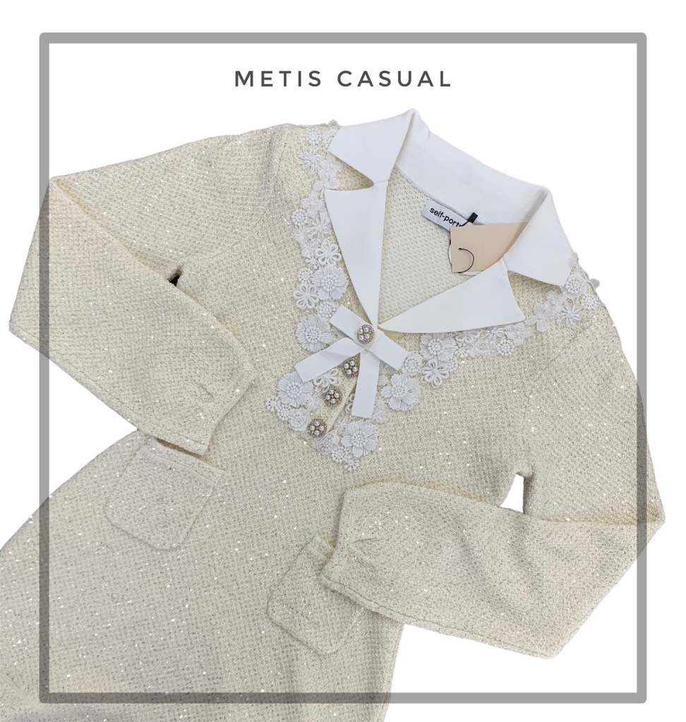 Váy SELF PORTRAIT bling cổ nơ trắng