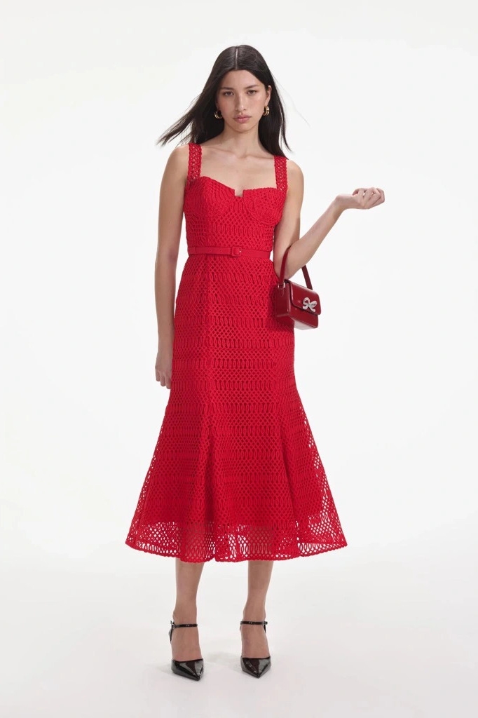 Váy SELF PORTRAIT 2 dây ren dập đỏ