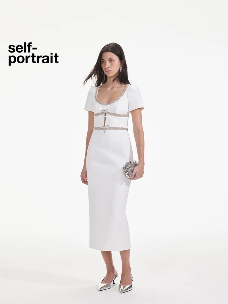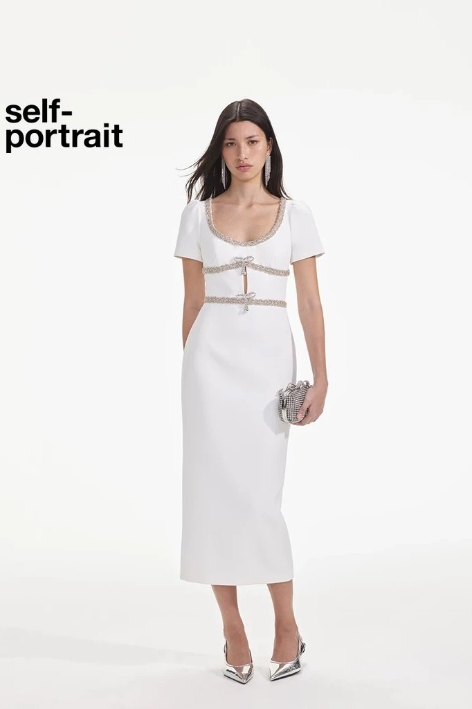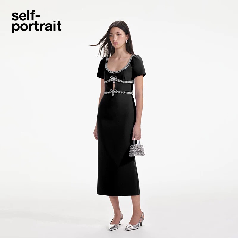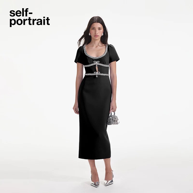 Váy SELF PORTRAIT cổ nơ viền đá 2 màu