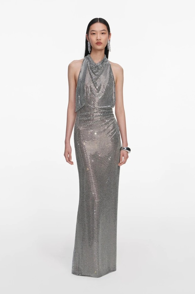 Váy SELF PORTRAIT đá ghi cổ đổ