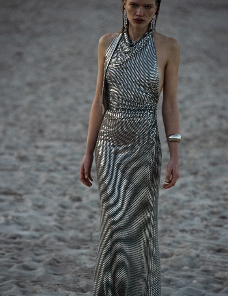 Váy ZARA kem cổ yếm lụa satin