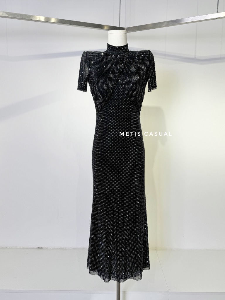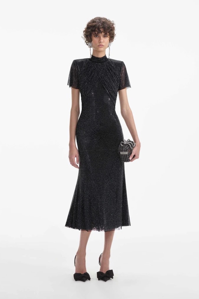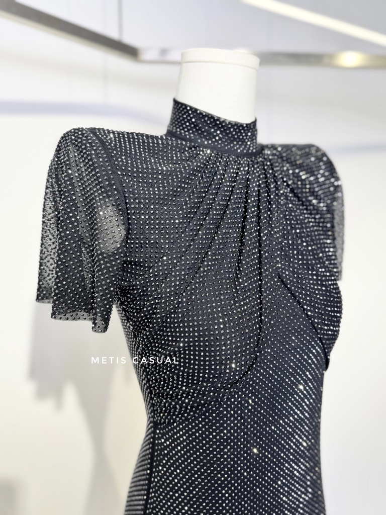 Váy SELF PORTRAIT cộc tay ren xanh hoa nổi