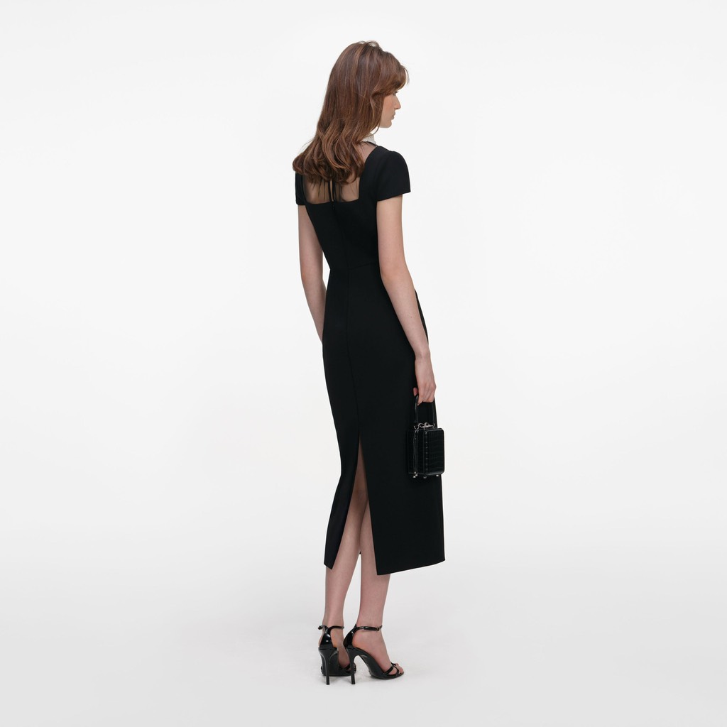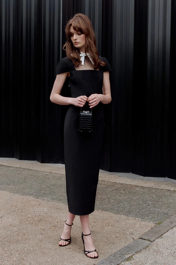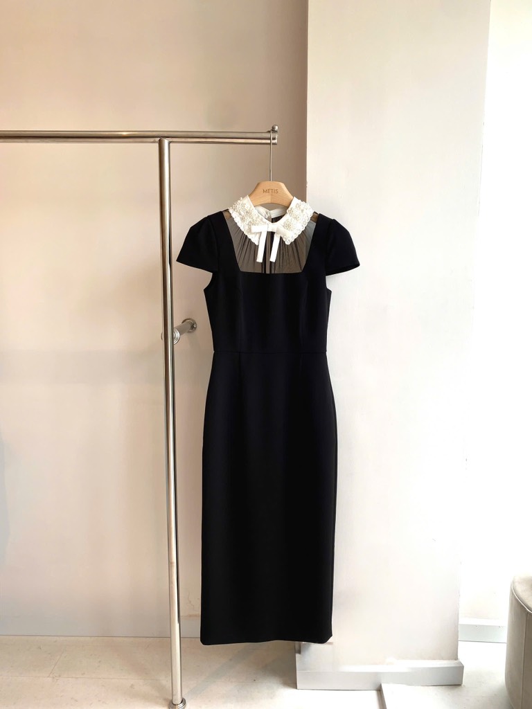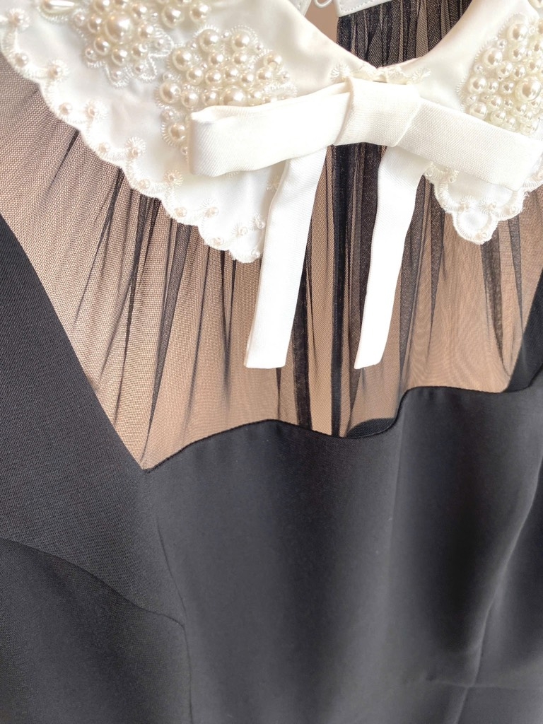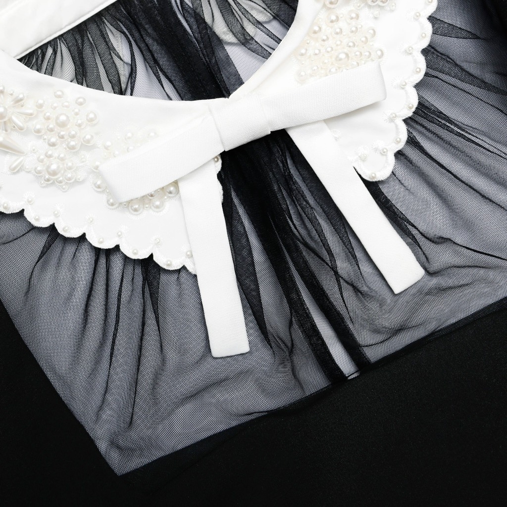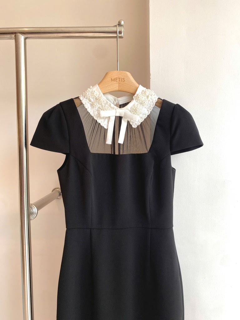 Váy SELF PORTRAIT đen cộc cổ ren trắng đá