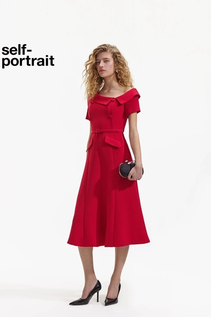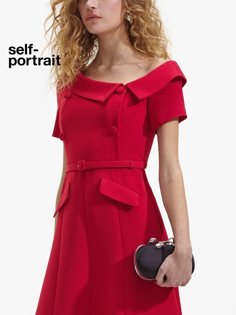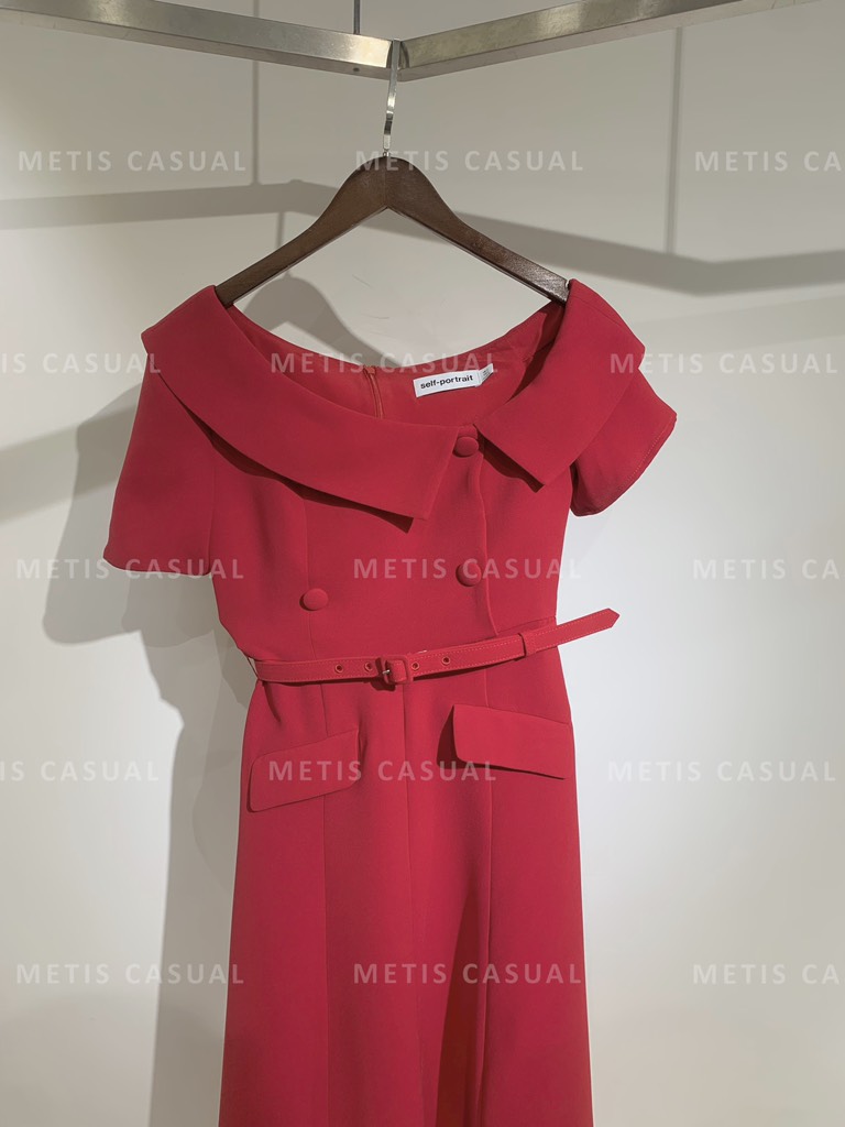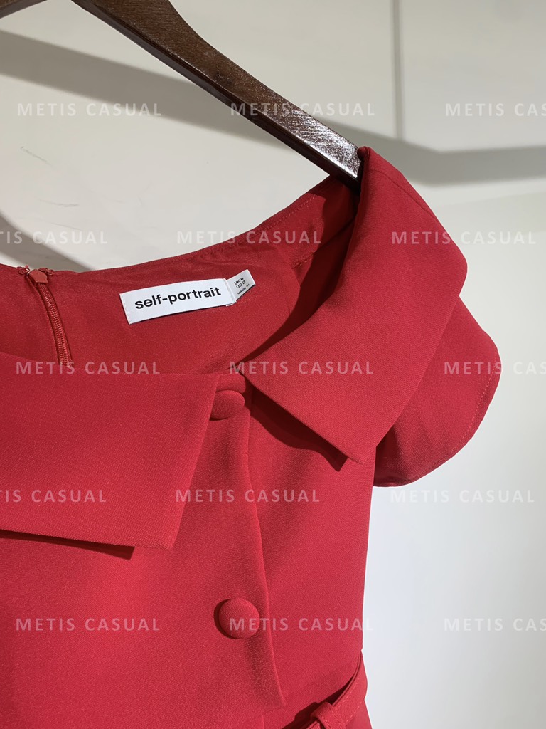 Váy SELF PORTRAIT cộc tay ren xanh hoa nổi