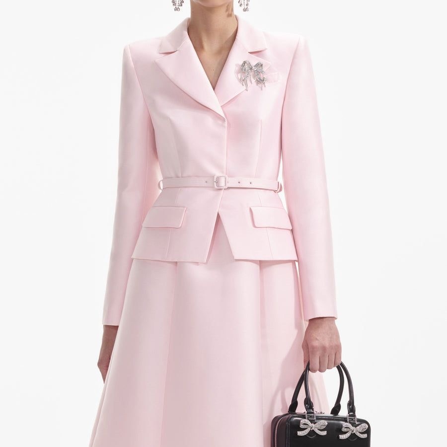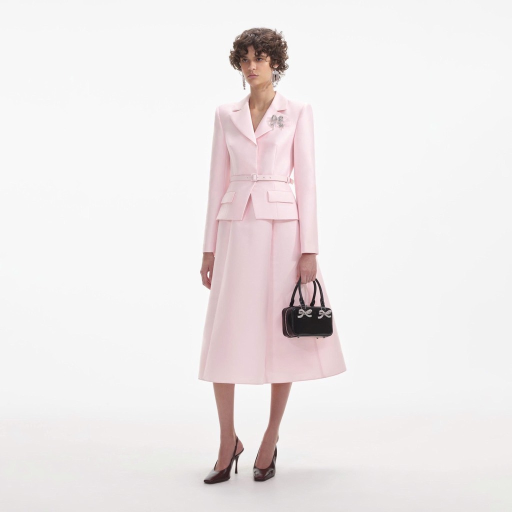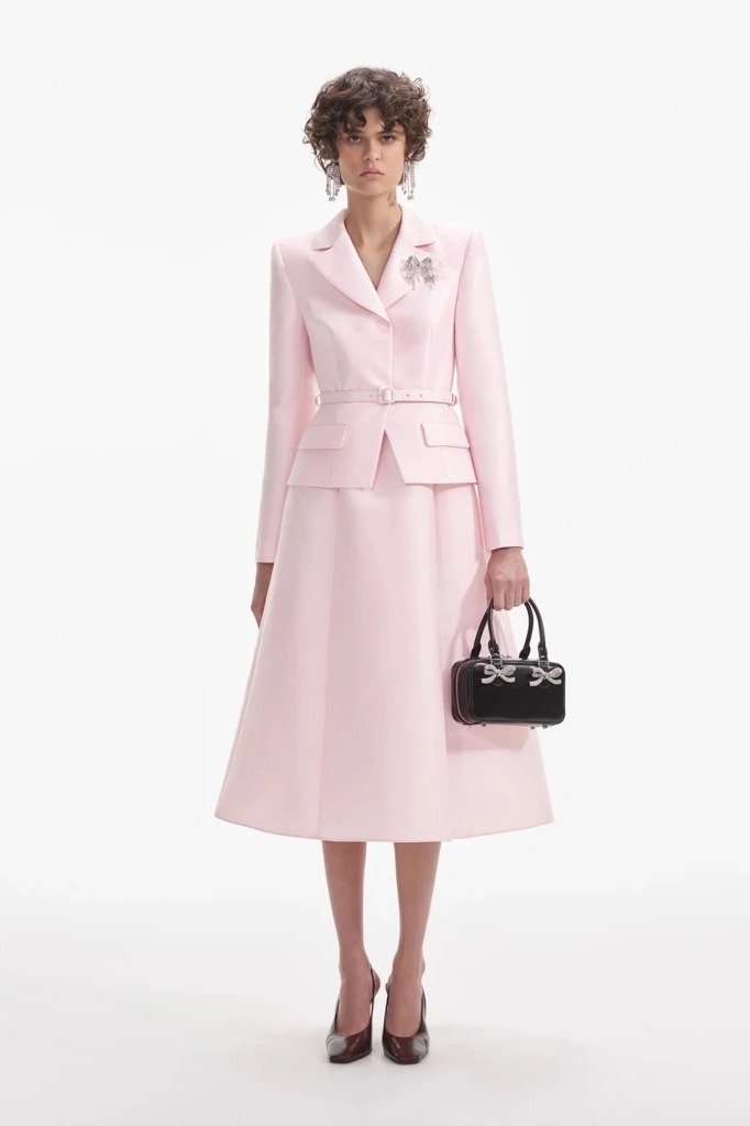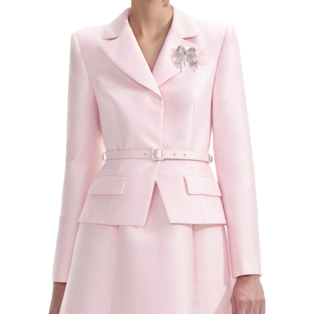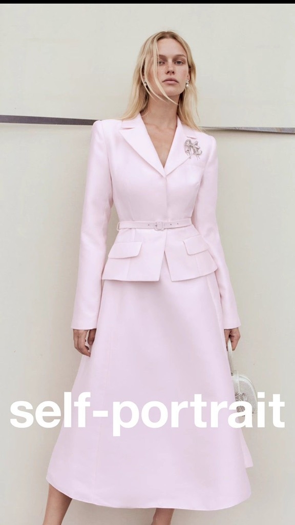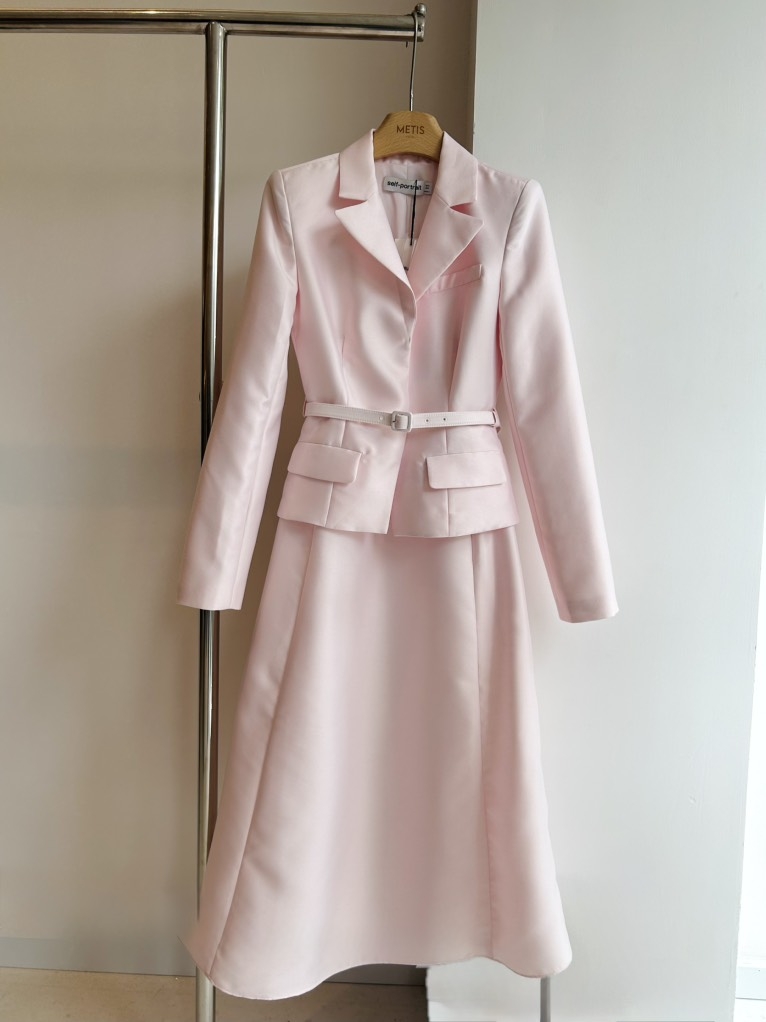 Váy SELF PORTRAIT hồng cổ bẻ kèm belt