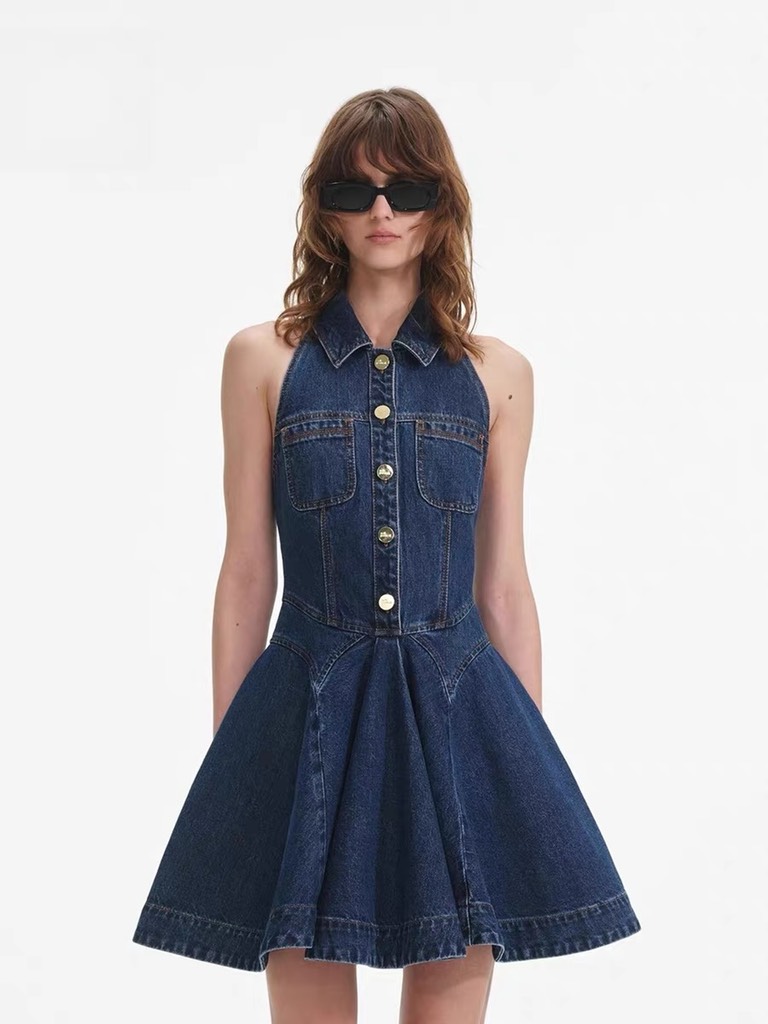 Váy 2 dây SANDRO đen chân xòe cổ đá