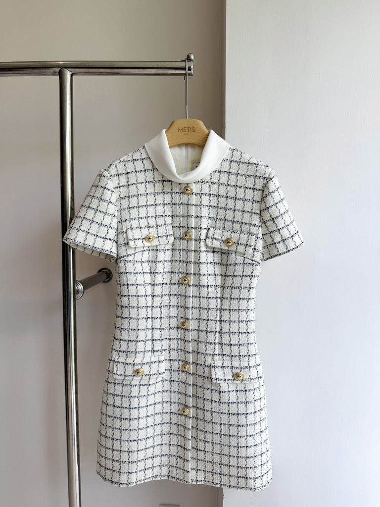 Váy SELF PORTRAIT kem kẻ cộc tay