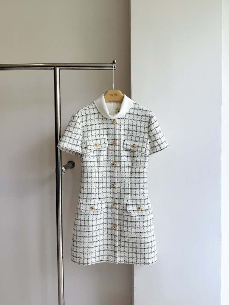 Váy MANGO cổ yếm kẻ nâu