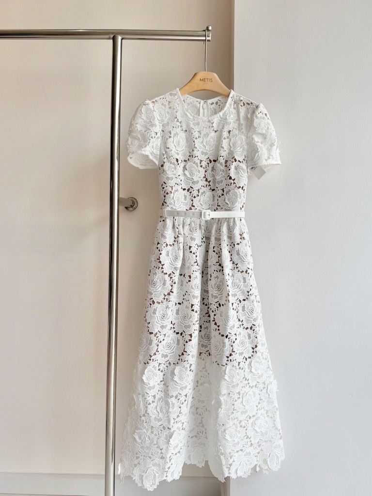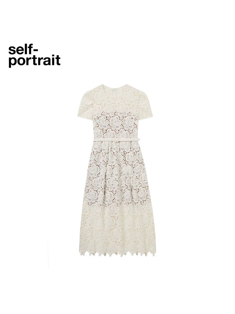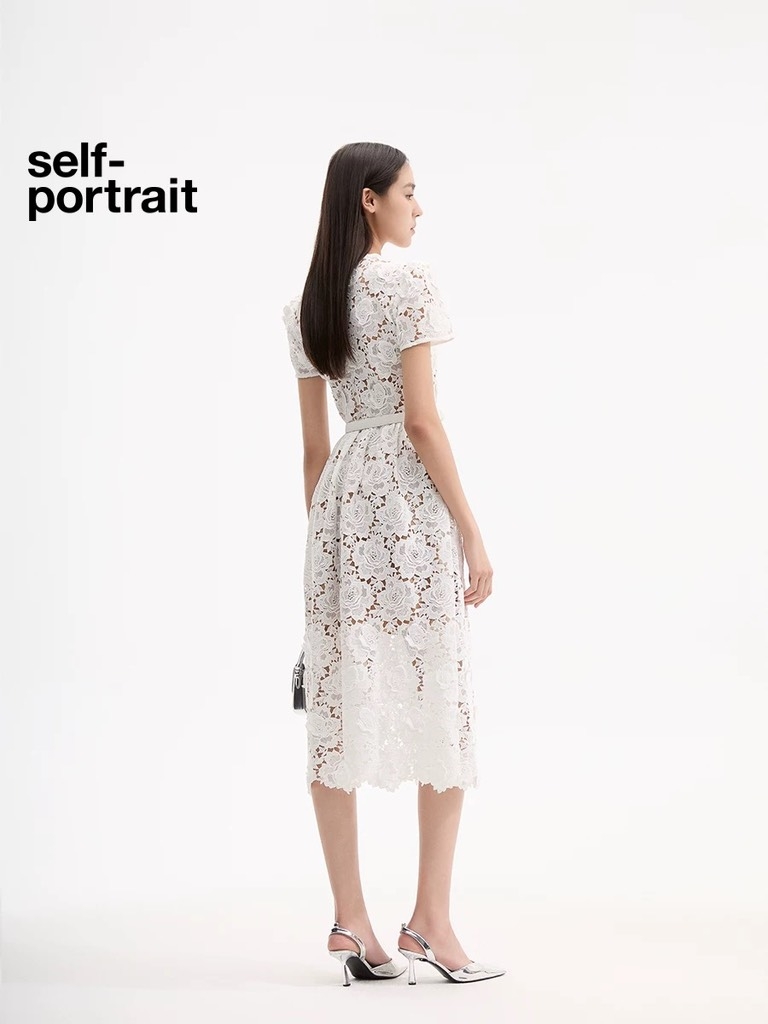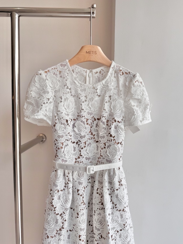 Váy SELF PORTRAIT cộc tay ren xanh hoa nổi