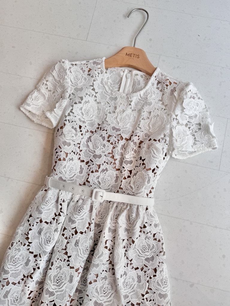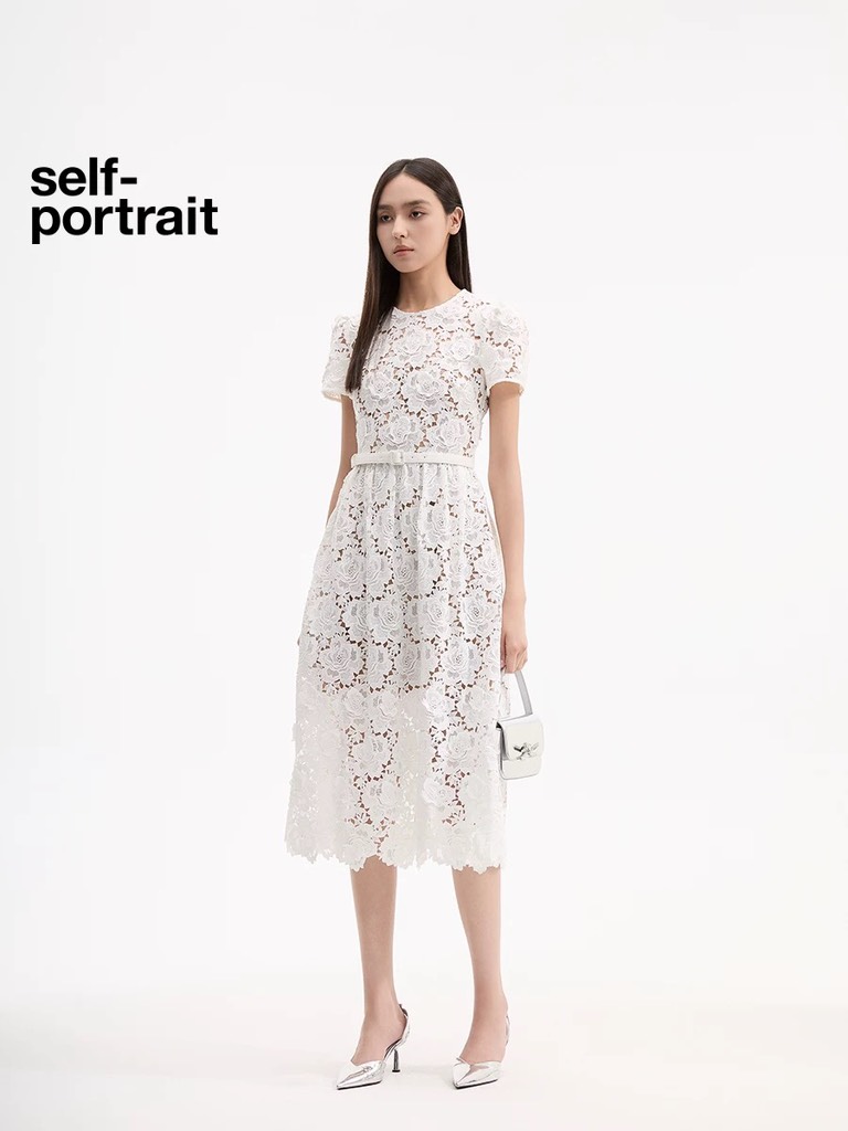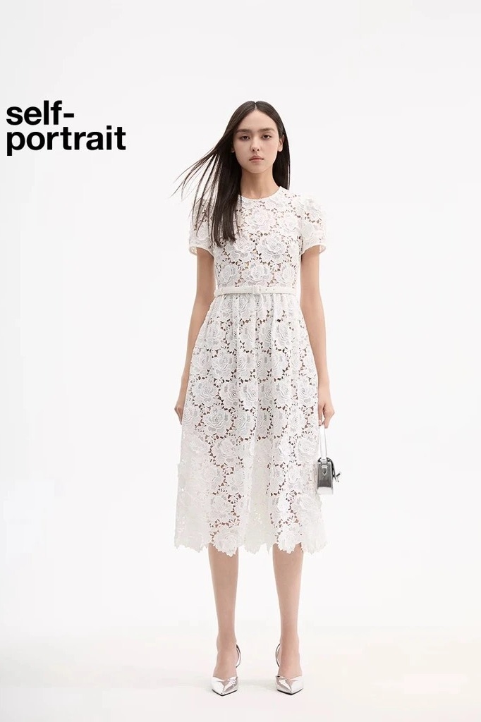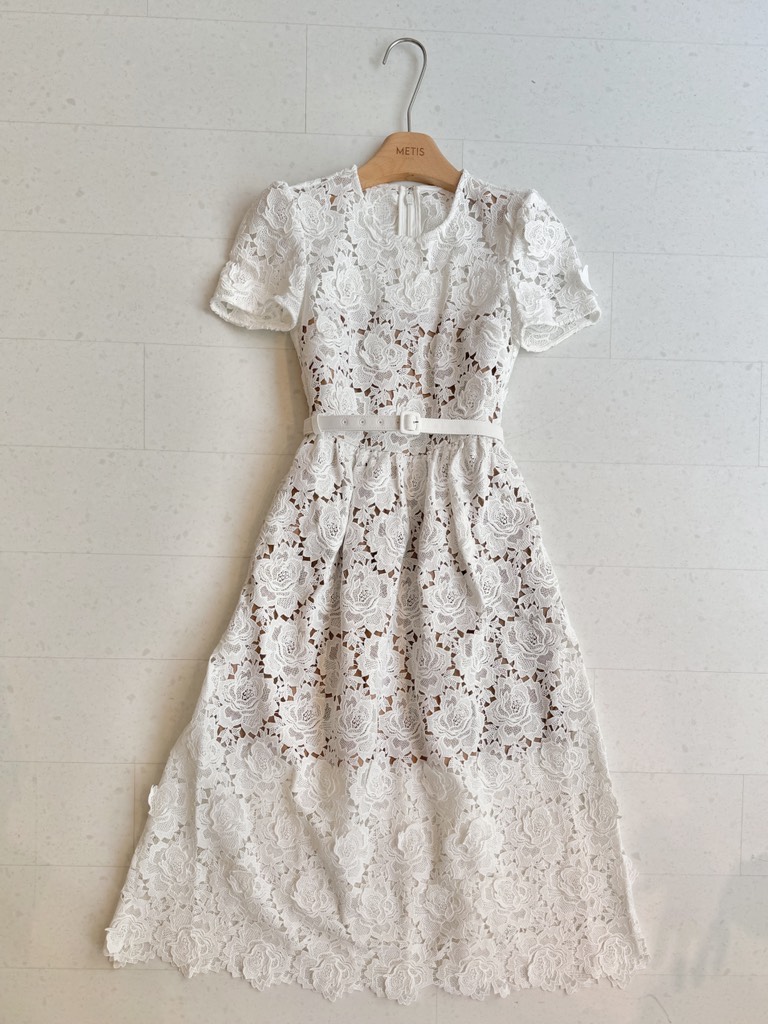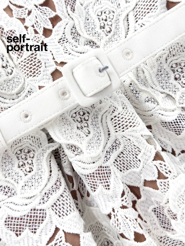Váy SELF PORTRAIT cộc tay ren xanh hoa nổi