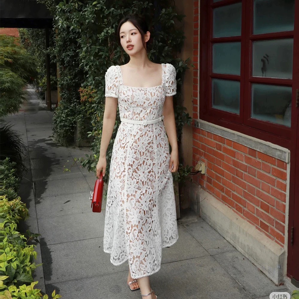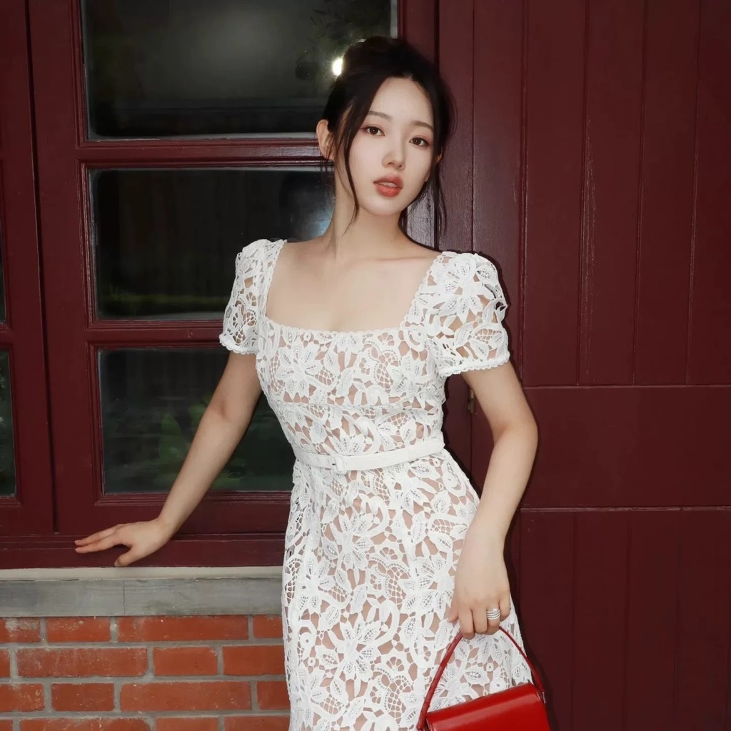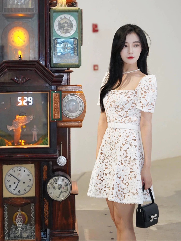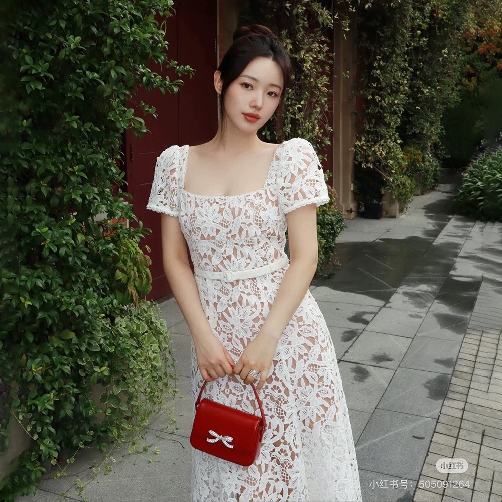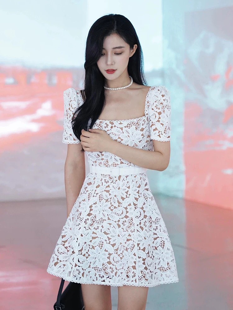 Váy SELF PORTRAIT ren trắng dáng ngắn