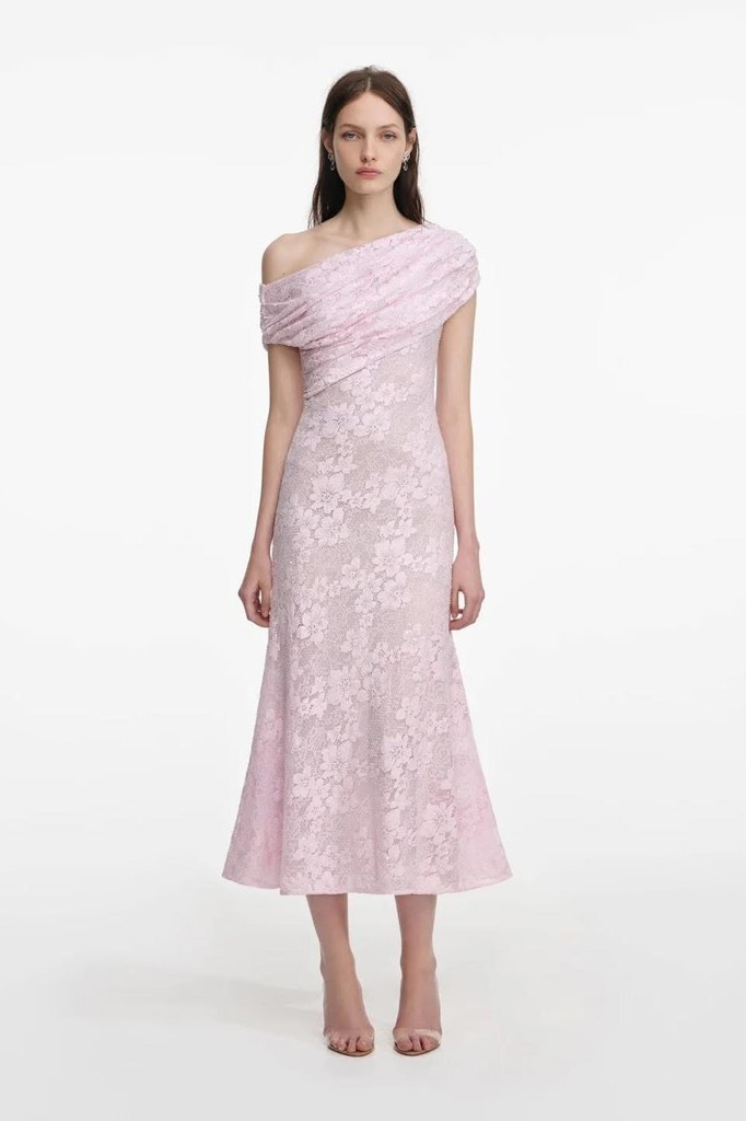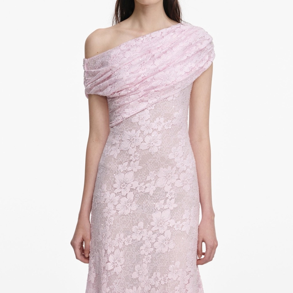 Váy SELF PORTRAIT trễ vai bling hồng