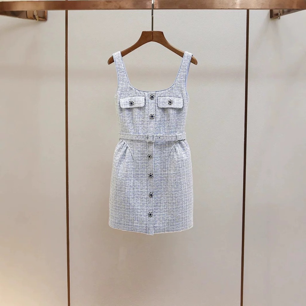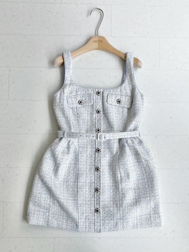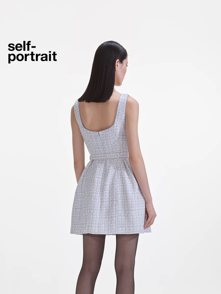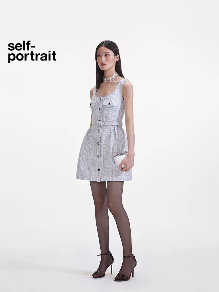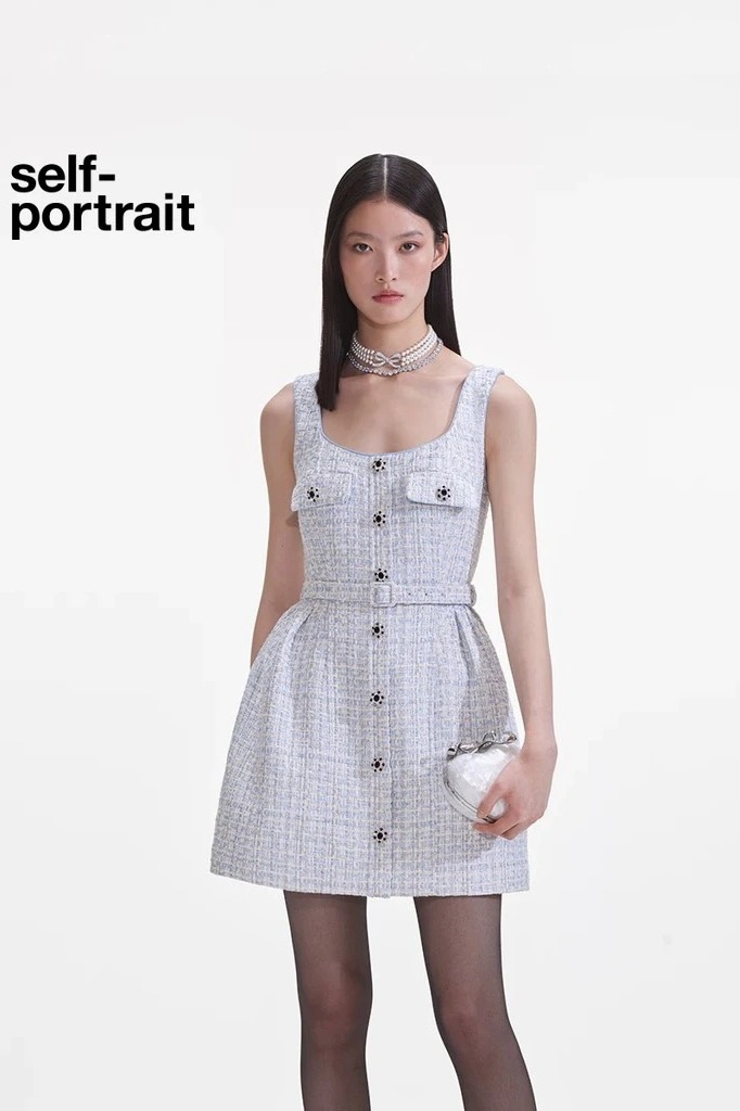 Váy SELF PORTRAIT tweed 2 dây khuy đá