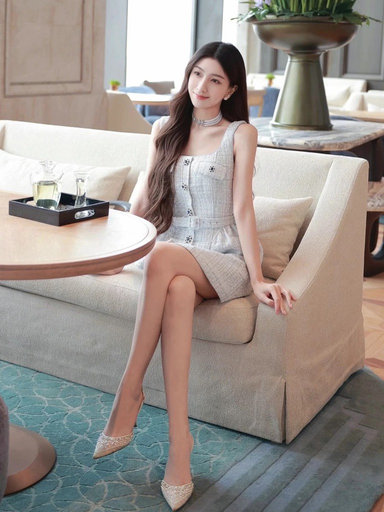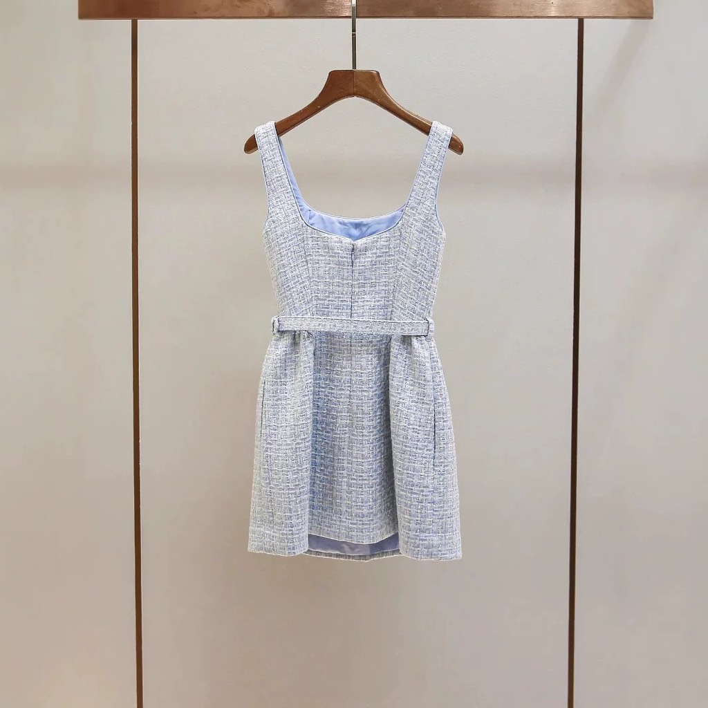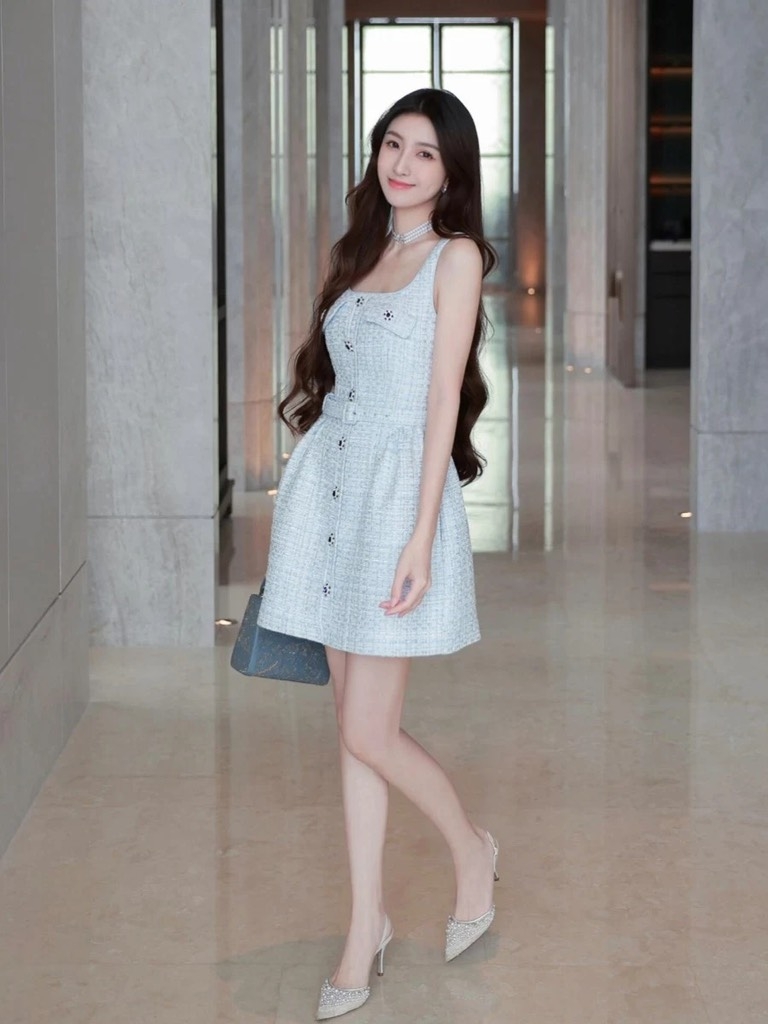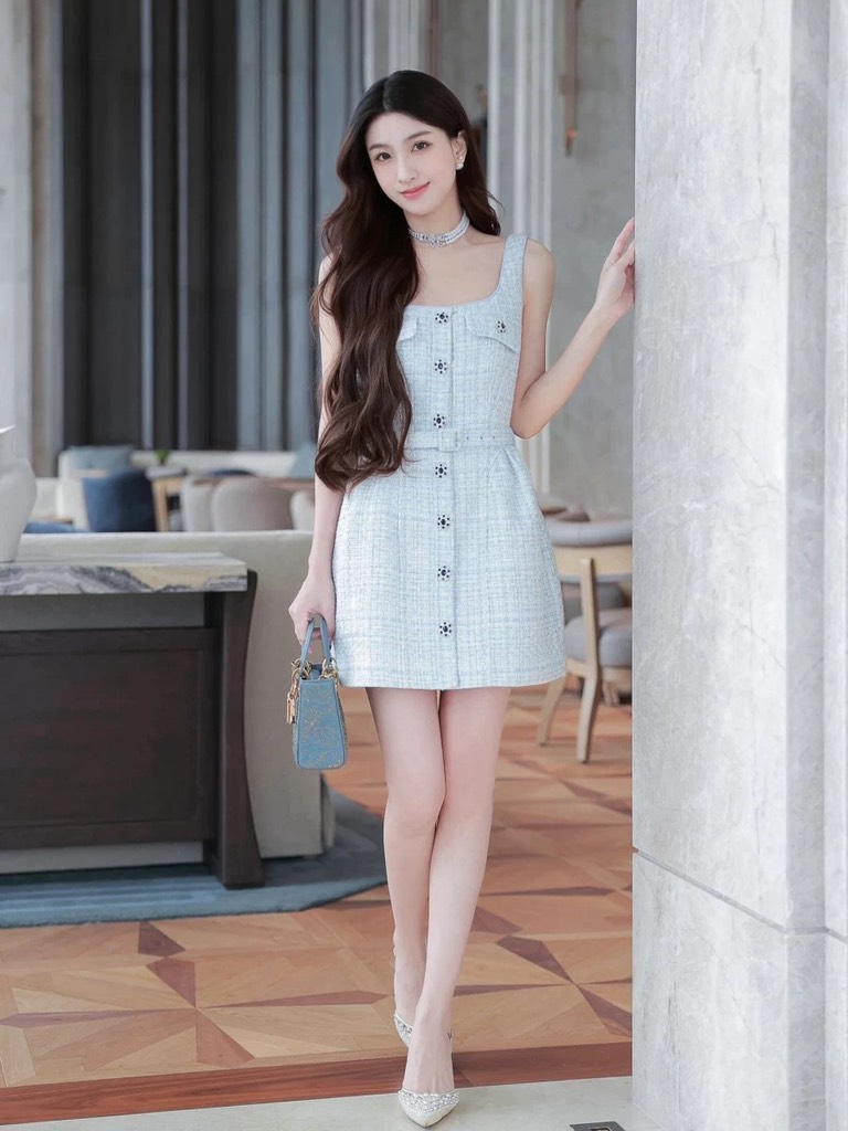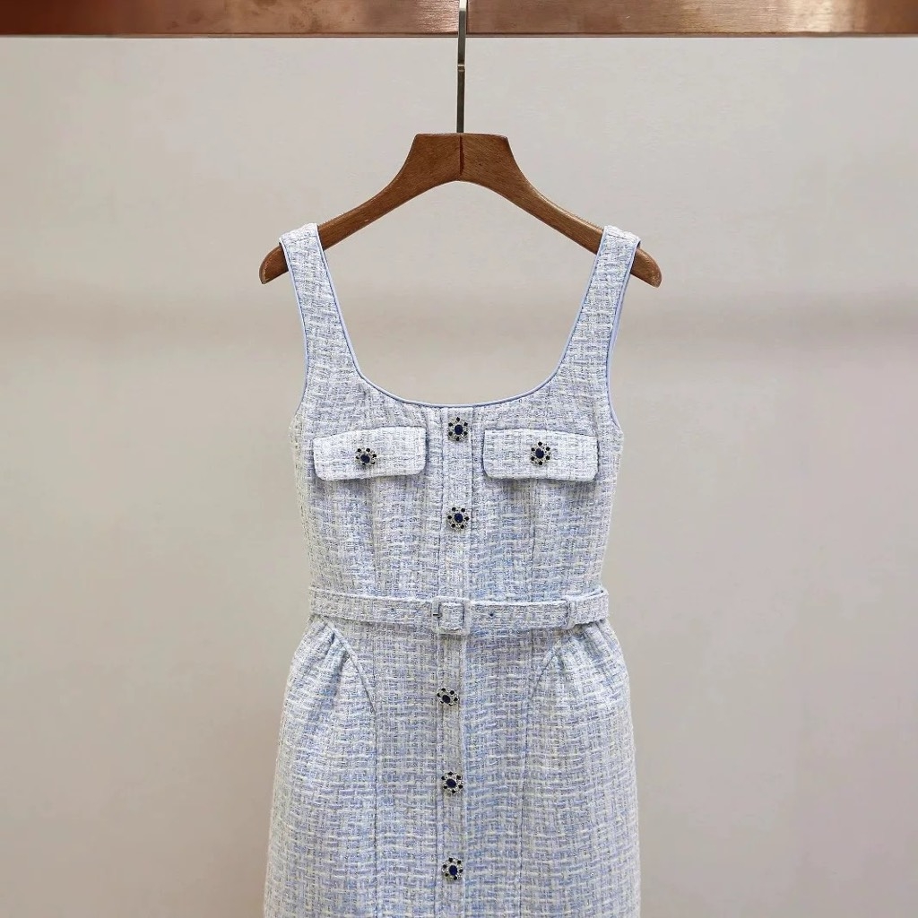 Váy SELF PORTRAIT tweed 2 dây khuy đá