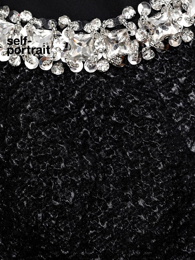 Váy SELF PORTRAIT đen cộc cổ ren trắng đá