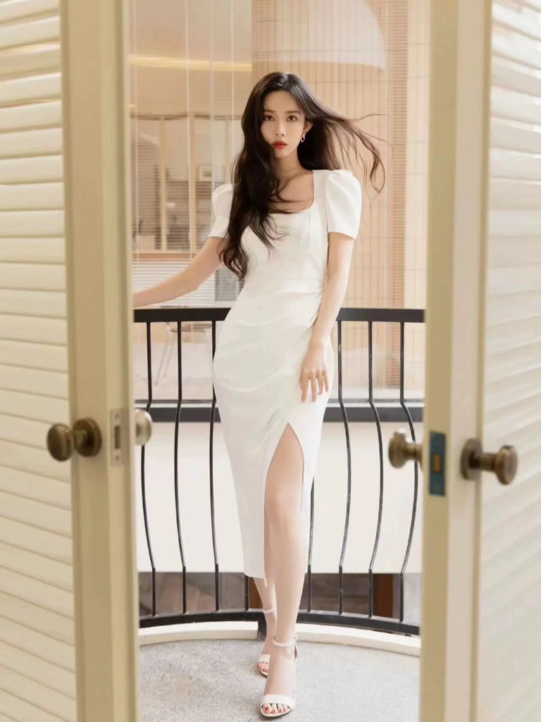 Váy SELF PORTRAIT trắng cổ vuông