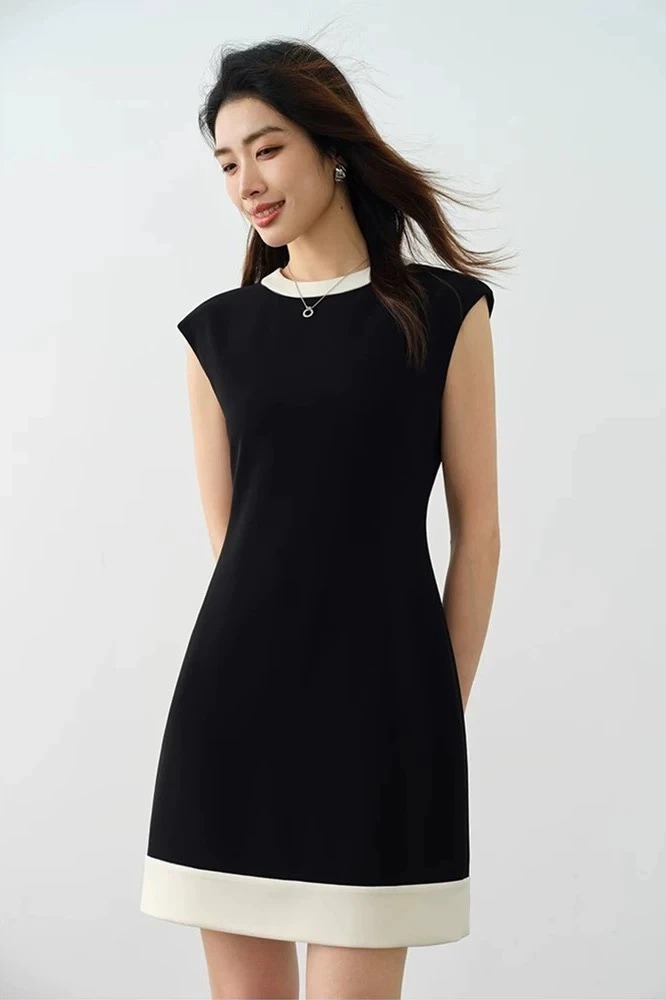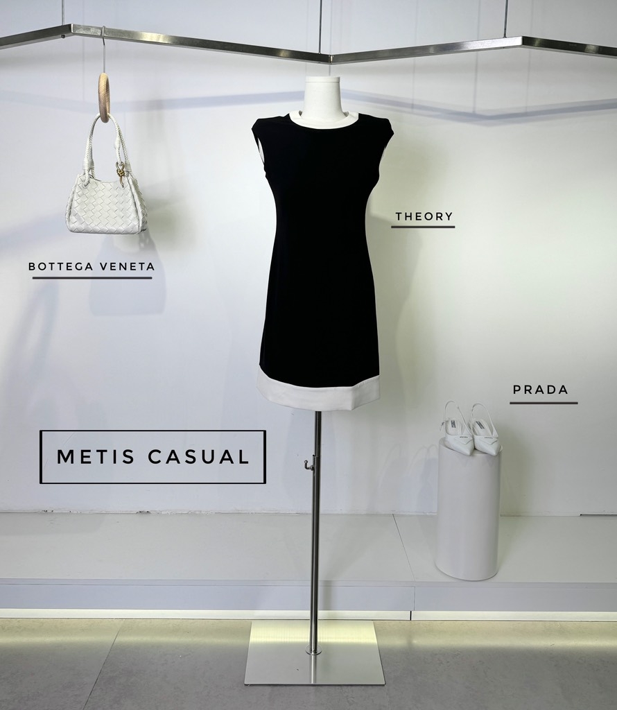 Váy THEORY sát nách đen viền trắng