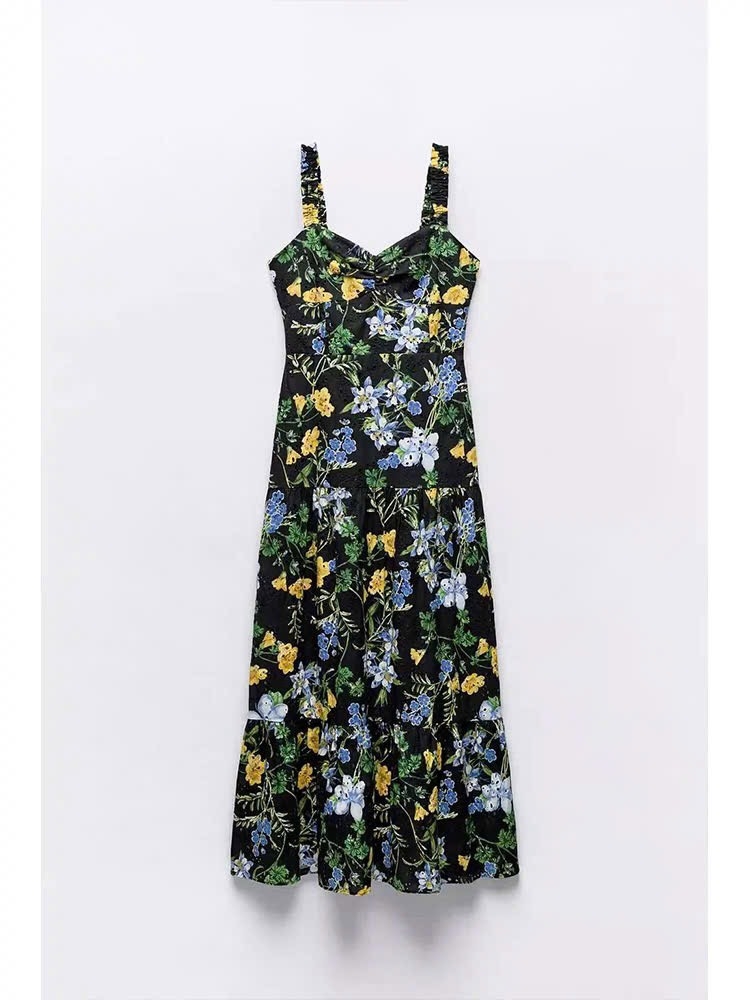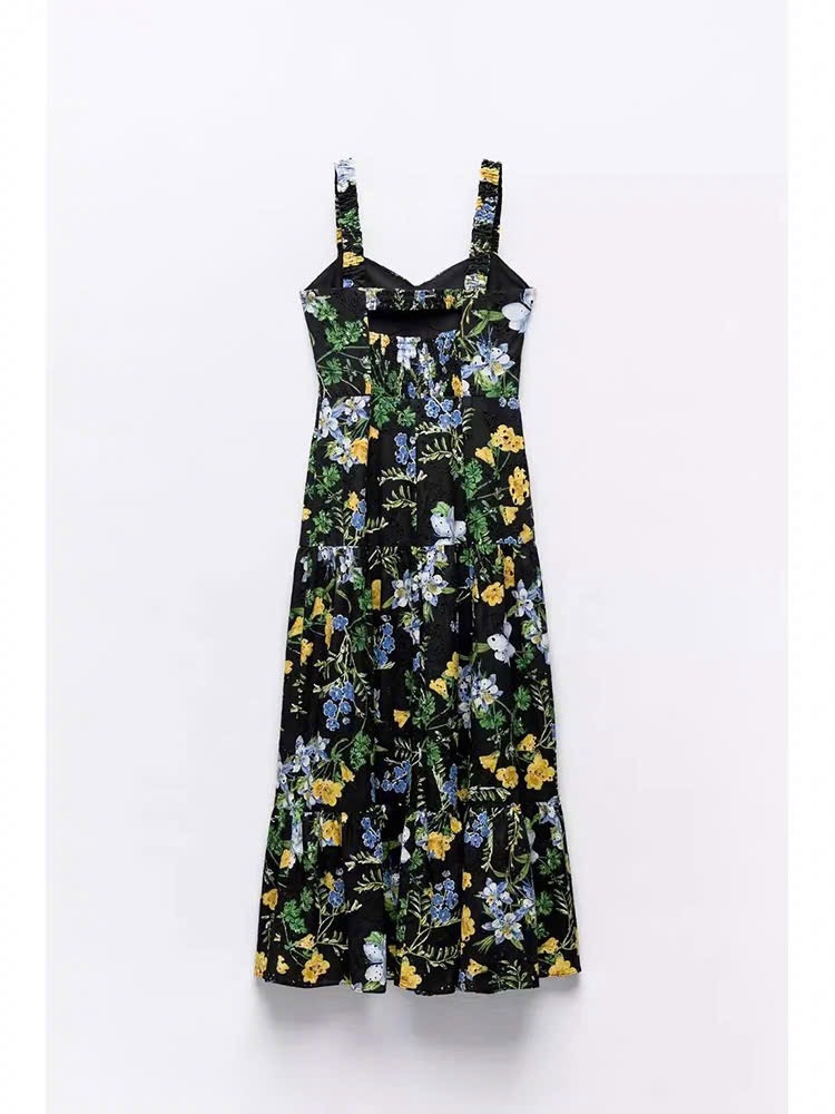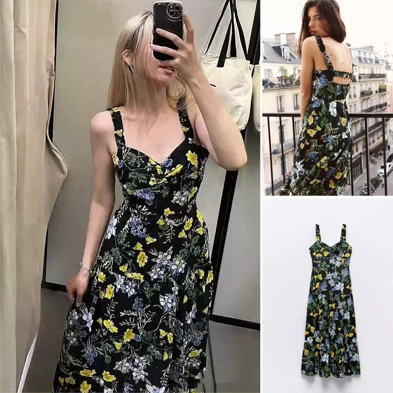 Váy ZARA 2 dây đen hoa vàng