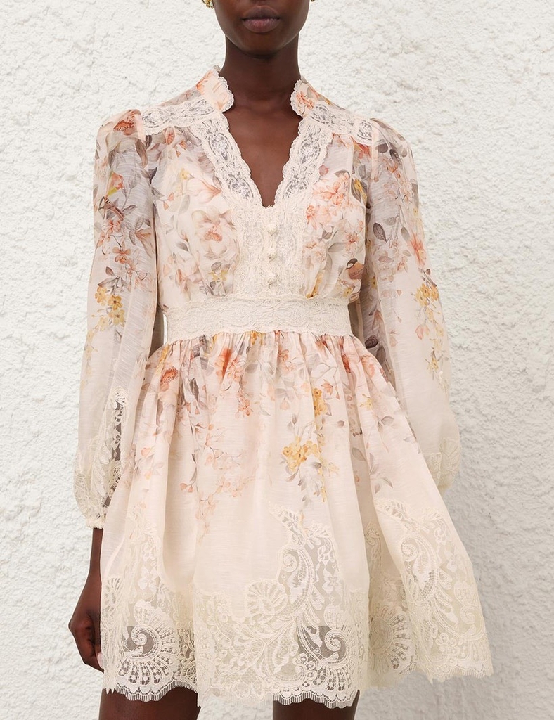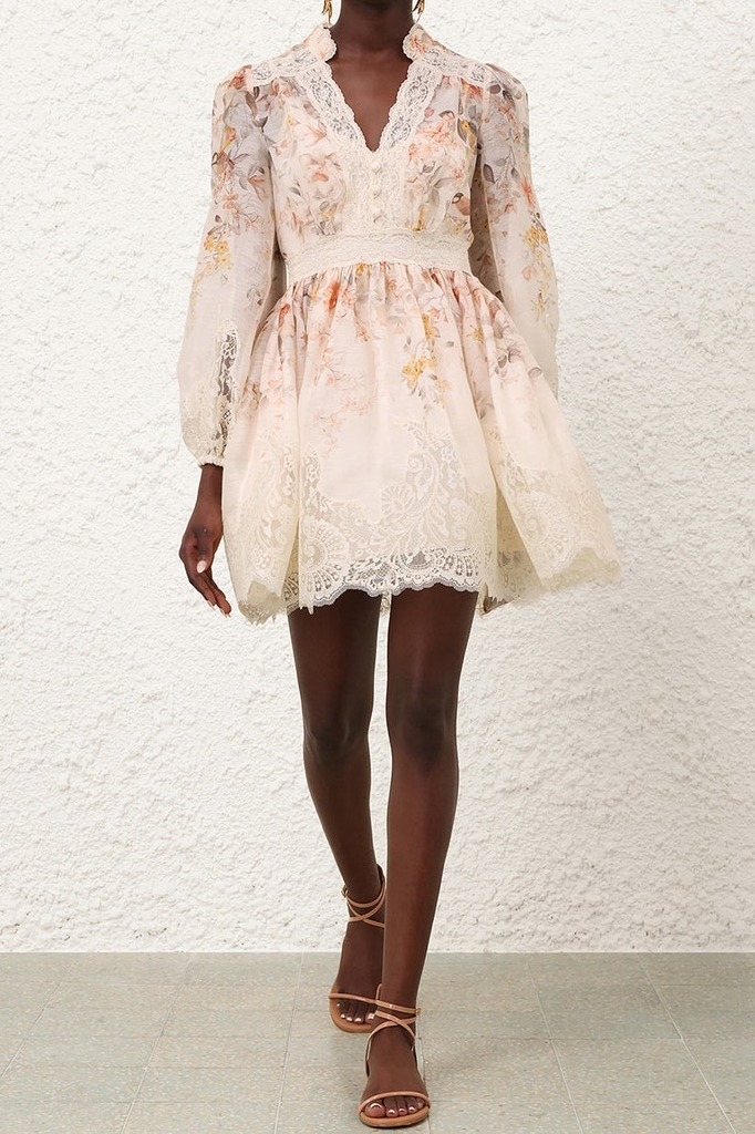 Váy ZIMMERMANN cổ V viền ren dài tay