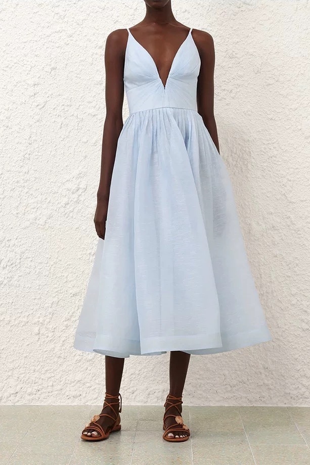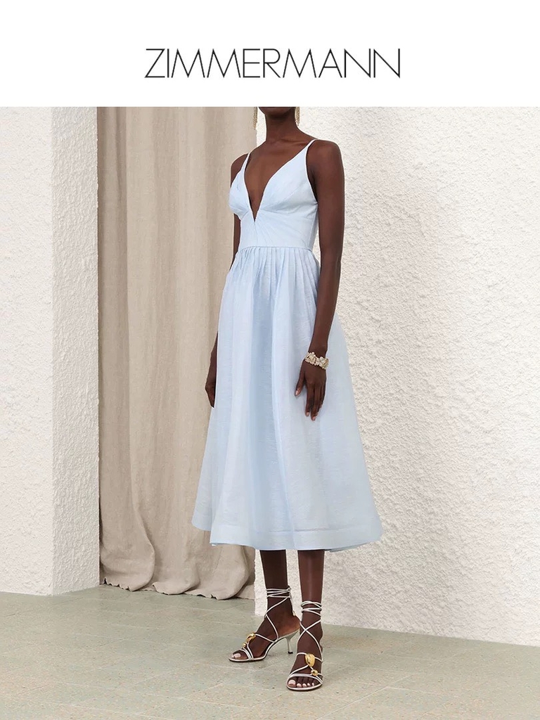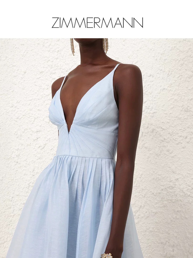 Váy ZIMMERMANN hoa nâu cổ V dáng dài