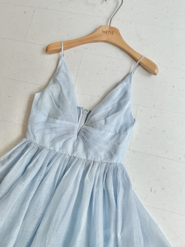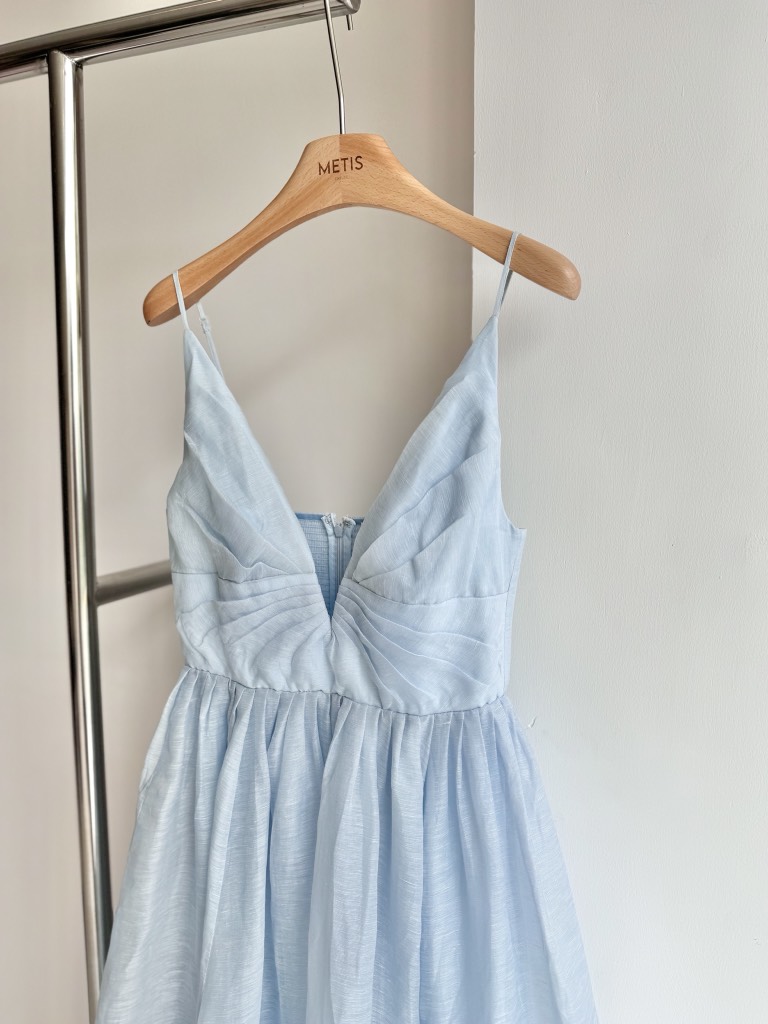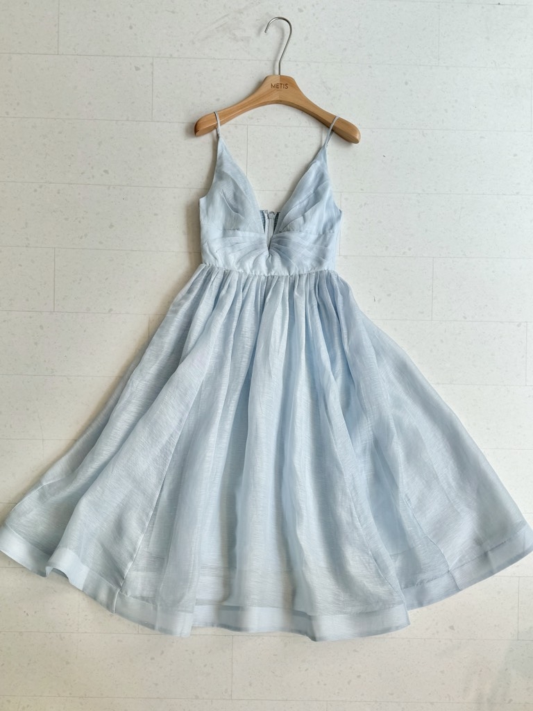 Váy SELF PORTRAIT cộc tay ren xanh hoa nổi