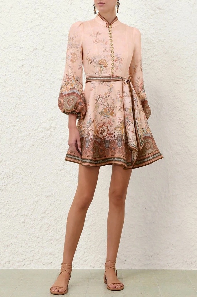Váy ZIMMERMANN dài tay viền cổ nâu