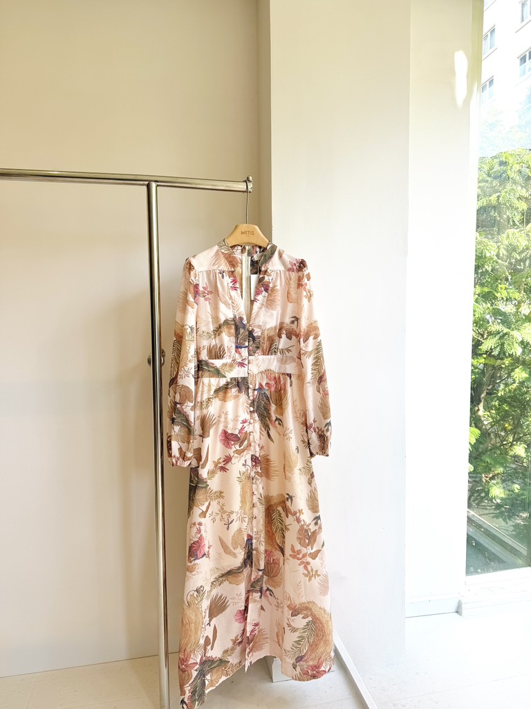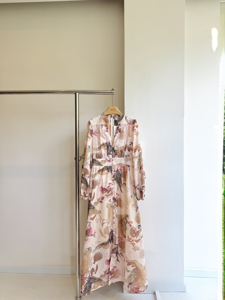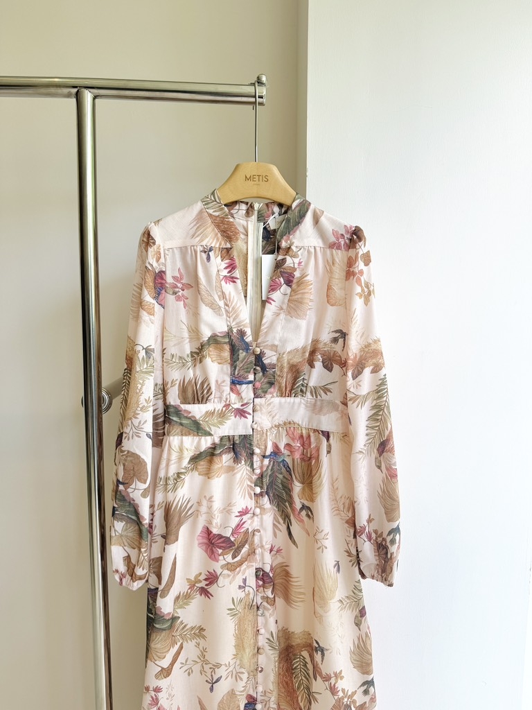 Váy ZIMMERMANN hoa nâu cổ V dáng dài